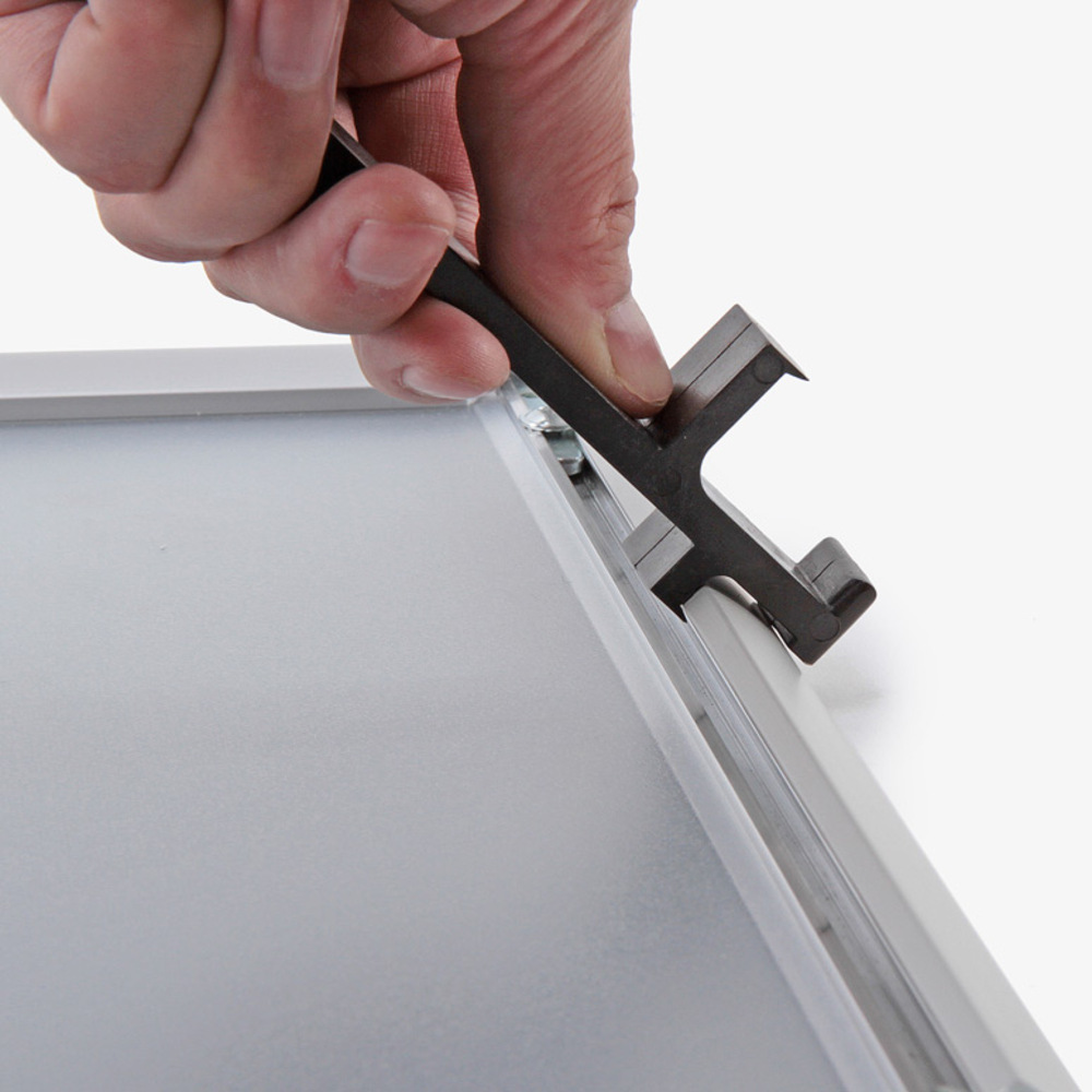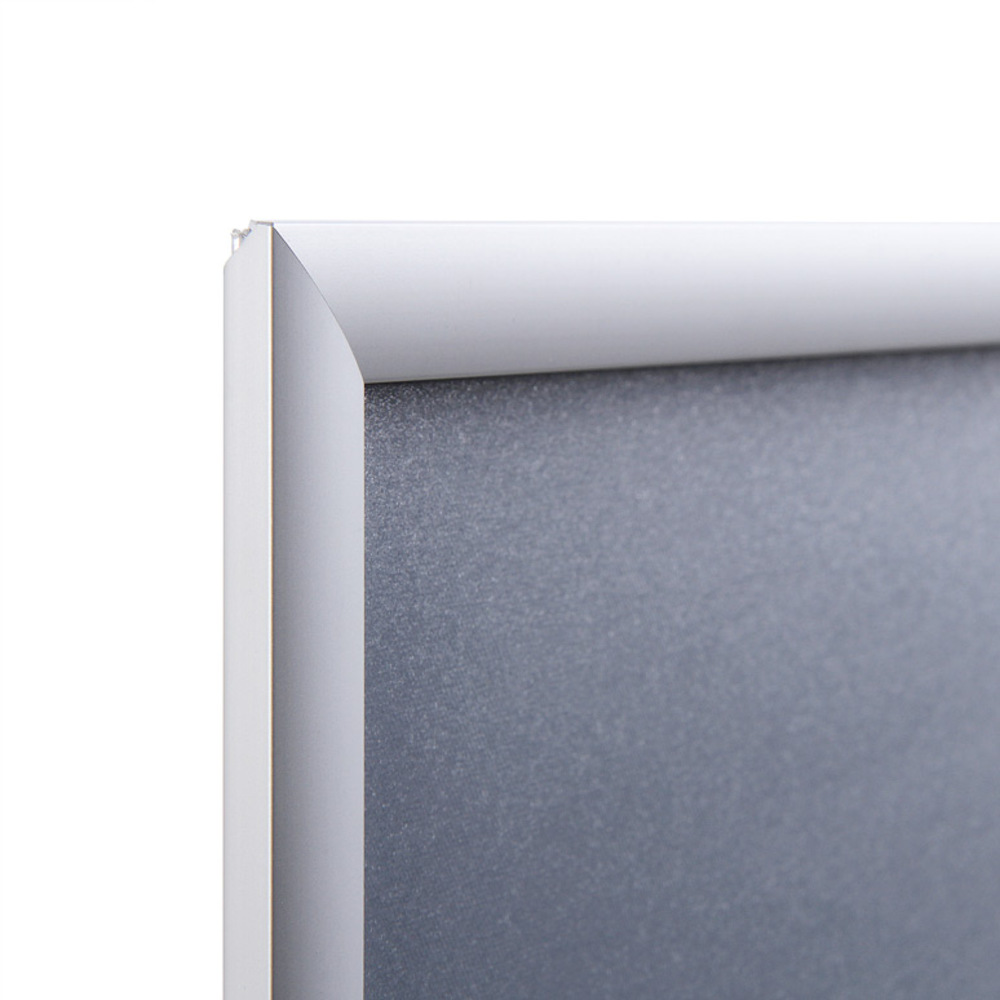 A minimalistic design with a shallow radius profile. Ideal for wall fix applications. The profiles have mitred corners and are supplied in individually boxes. A perfect solution for smaller poster sizes from A5 to A1 format.