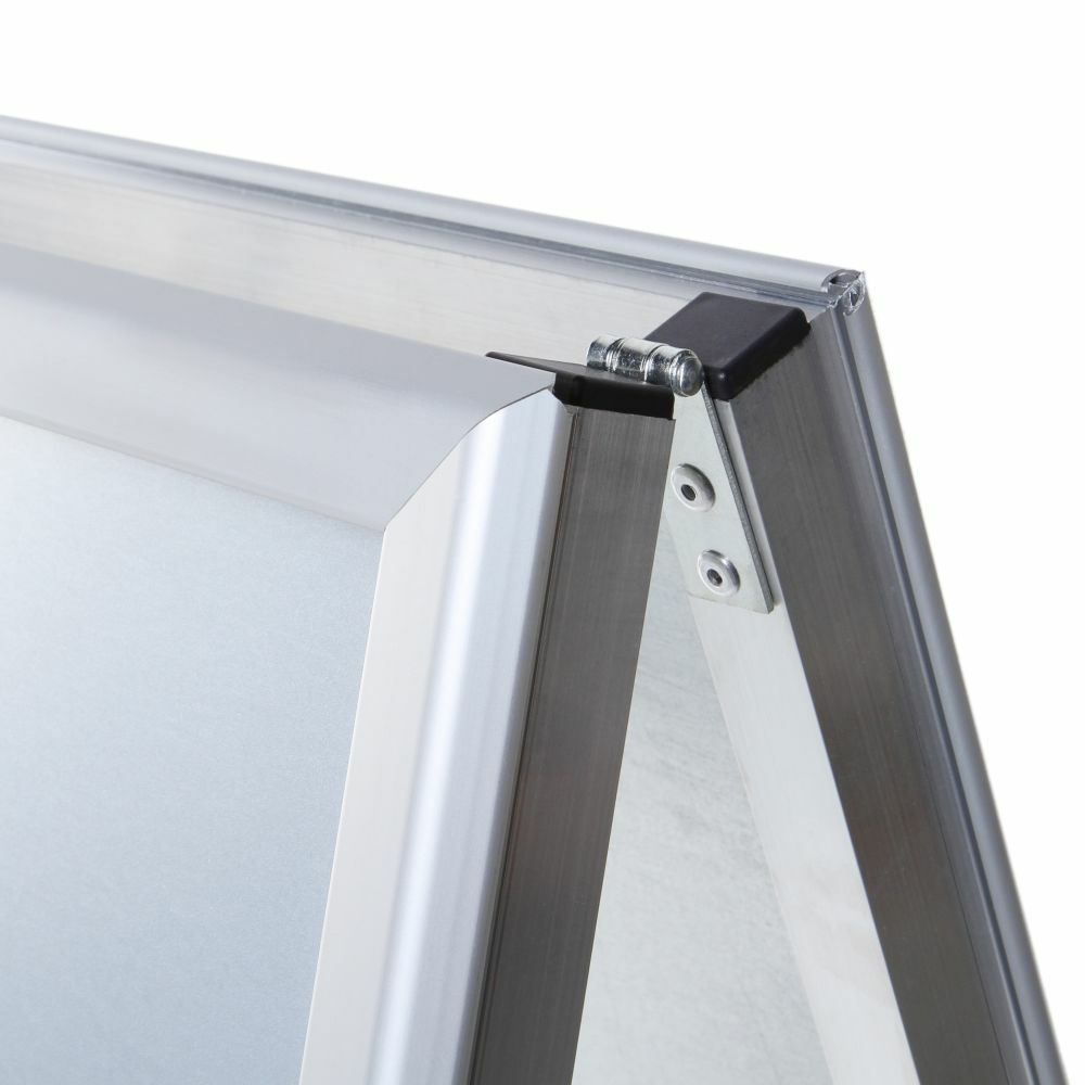 A popular A-board that fits in every situation; from shopping centers, covered public spaces, to the hospitality sector or at events. The aluminium A-board is a great pavement sign for double-sided advertisement and has a 32 mm thick profile with mitred corners. An excellent way to attract passing traffic. Choose the standard print design that suits your occasion. Available in A1 format.
