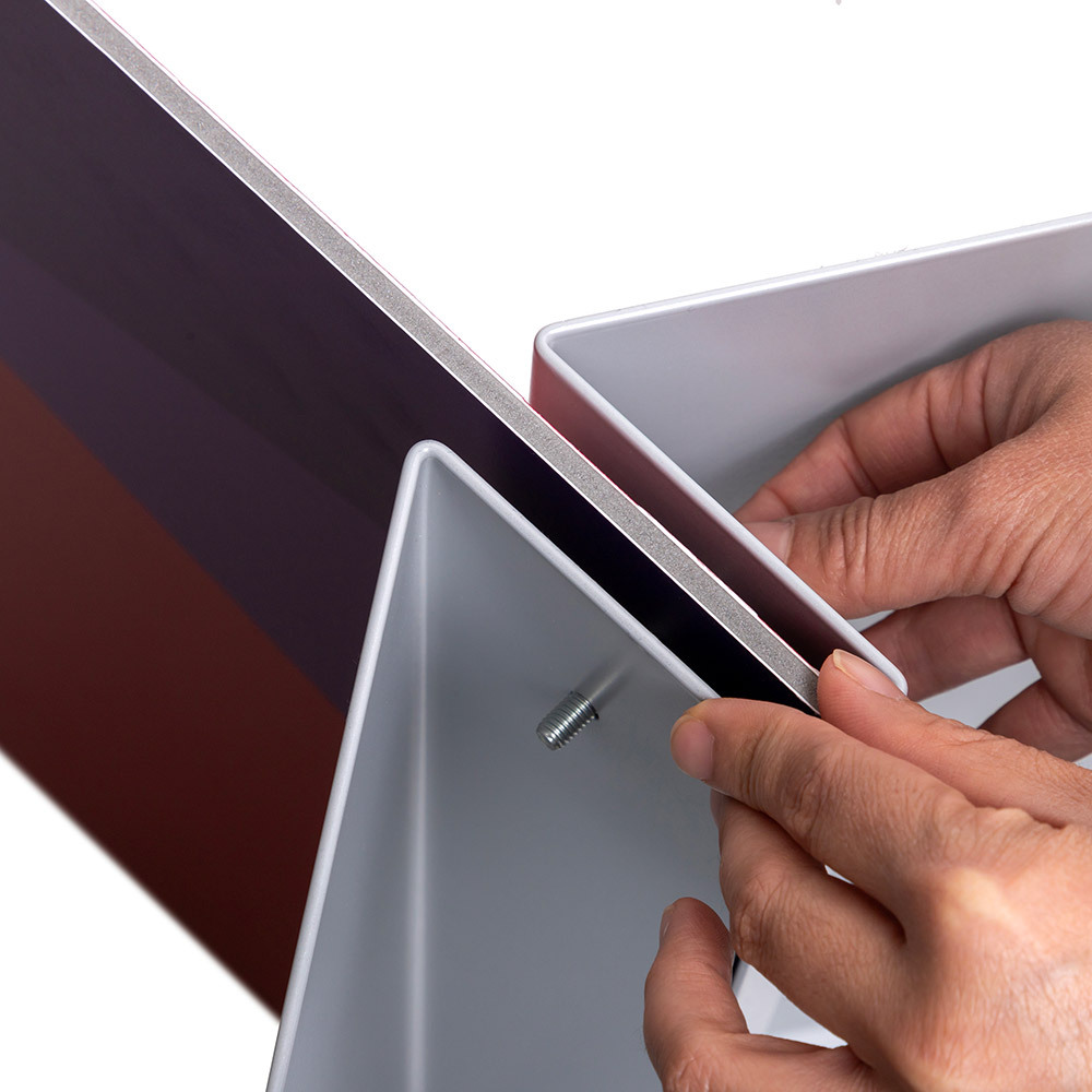 Show your promotion or message on the certified and ECO-friendly KAPA® Boards. With a wide panel tolerance ranging from 3 mm to 32 mm, the base is accommodating various panel ticknesses and a maximum panel height of 200 cm. The KAPA® Boards are suitable for indoor use only. You can find more information about the KAPA® Boards here.