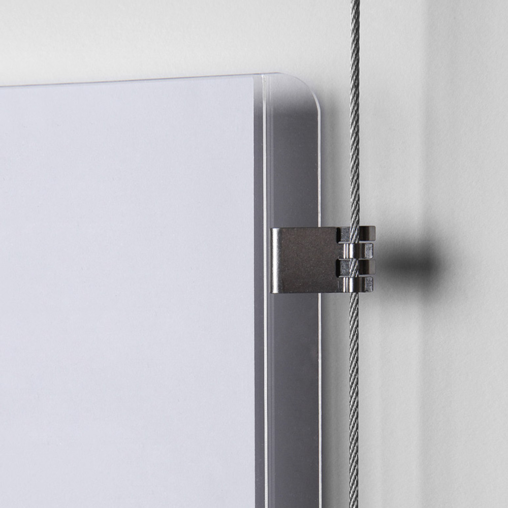 The included E-clips are easily connected to cable and poster pockets with a push-on click construction. Display your posters on the cable display system with the Appendo E-Clip Kit!