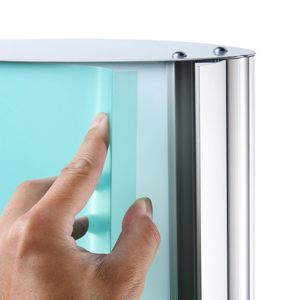 Let your poster shine bright with the Arcuato® Poster Light Column. Its curved, double-sided design ensures maximum visibility for your promotions. With snap profiles on the long sides and a sturdy steel base, it allows easy poster changes and reliable stability. A brilliant eye-catching solution to your advertising!