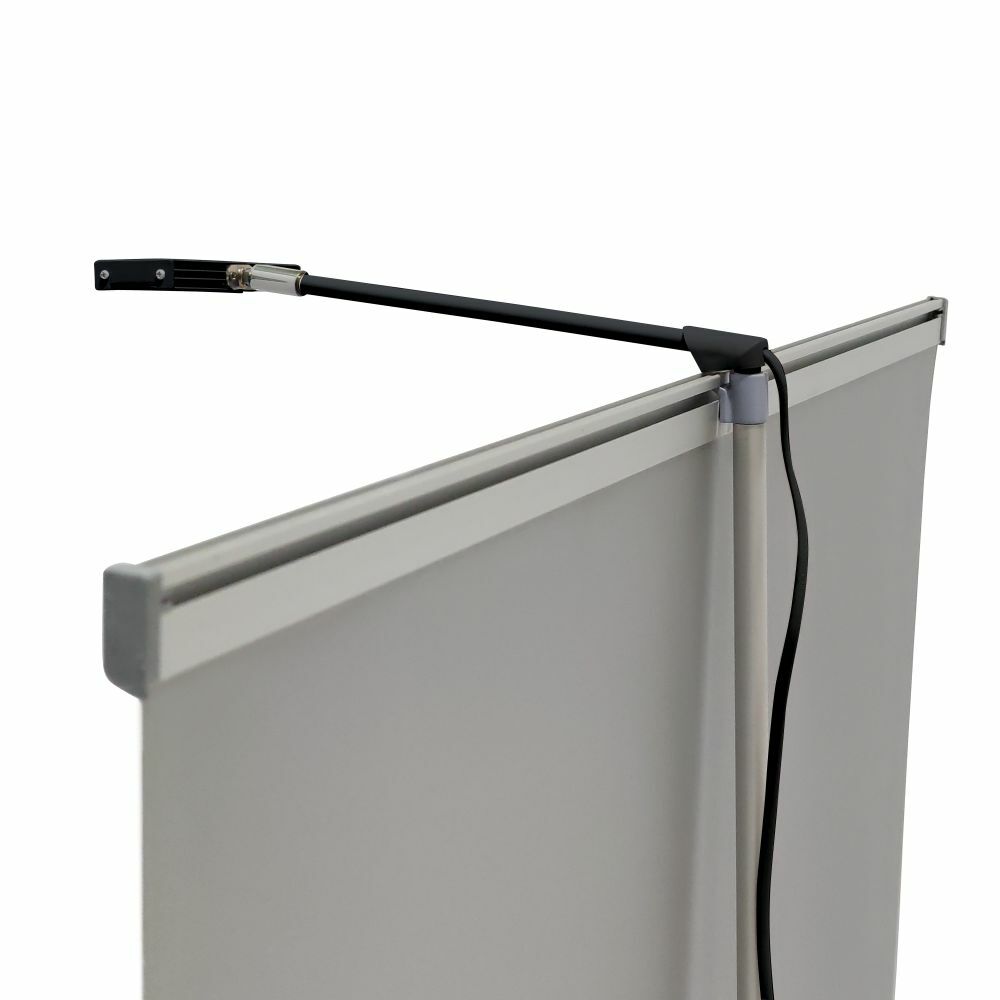 Light up your banner with the Banner LED! The 3 powerful LEDS sparkle 600 lumens of natural white light, literally putting your banner into the spotlight. The cat-eye lens transform light into an elongated bundle, making every detail of your print highlighted from top to bottom. Available in sleek black or silver to match your display setup.