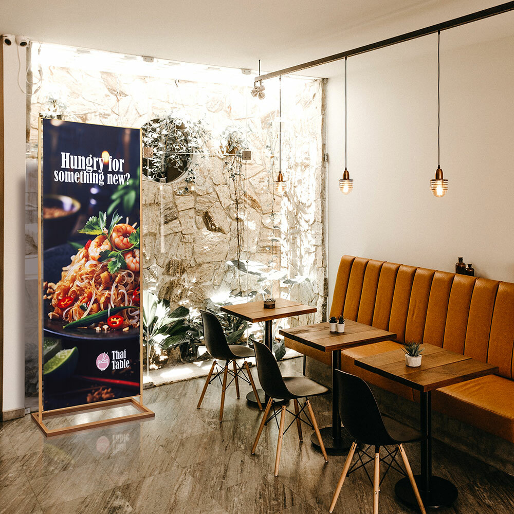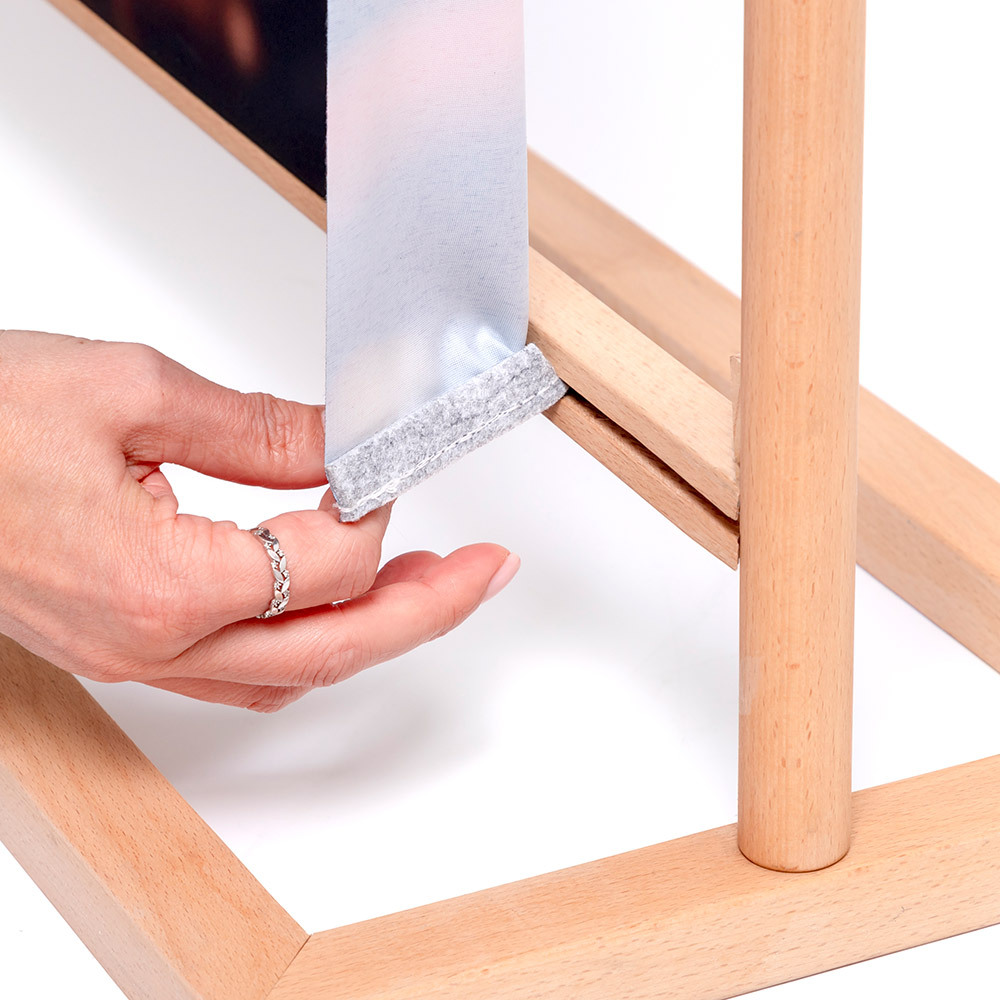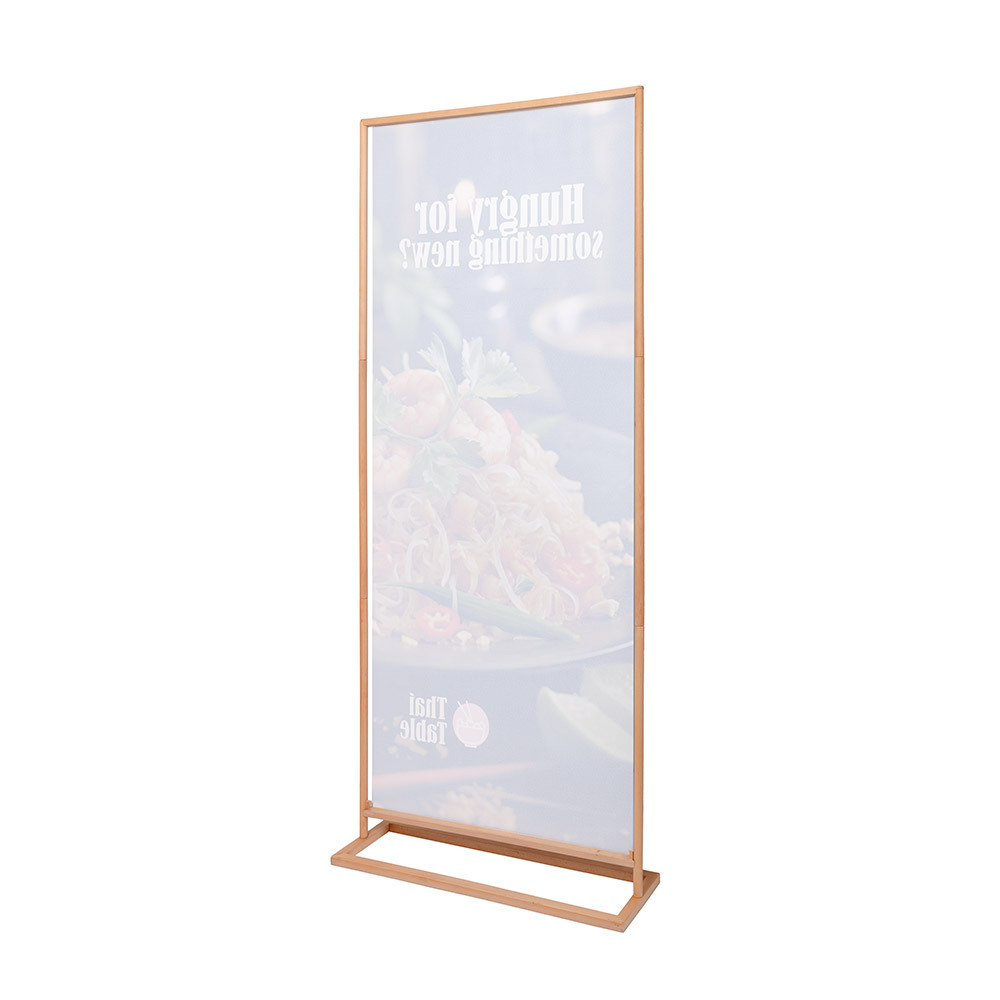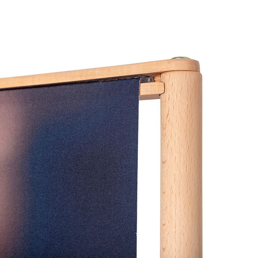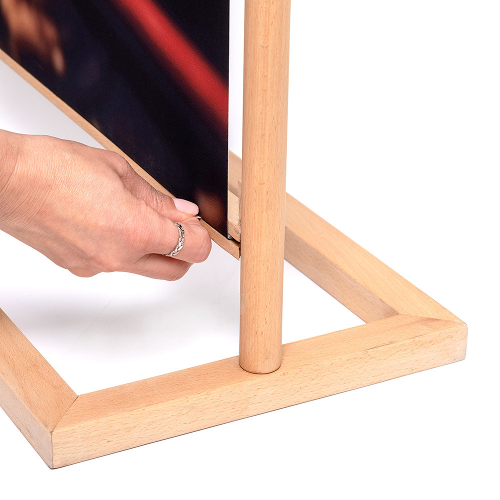 The Banner Stand Rustic redefines indoor banner promotion. Crafted from hard beech wood, renowned for its durability, it combines natural strength with an eco-friendly design. Whether for branding, welcome messages, or special promotions, your message stands out on a vivid graphic. The graphic is finished with 100% PES recycled keder on the short sides, allowing effortless updates. Quick to assemble and easy to transport, it’s ideal for events, public spaces, and the hospitality sector.