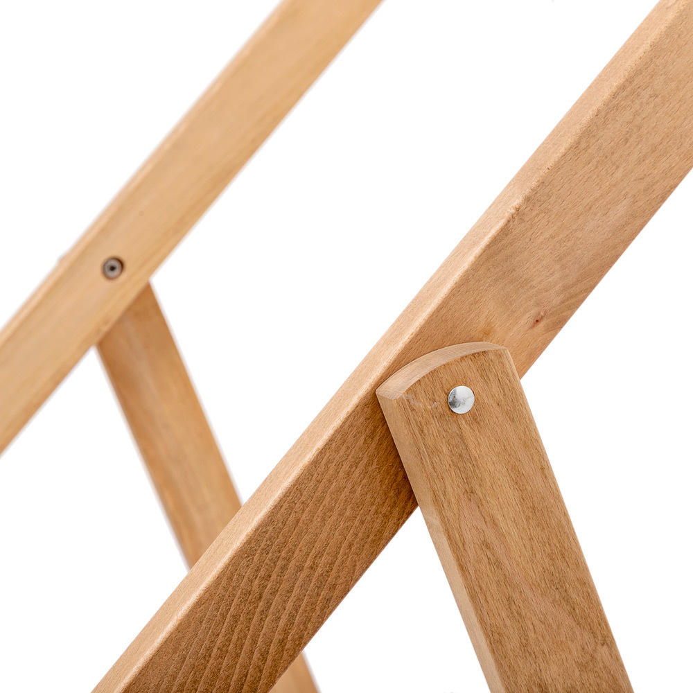 Discover premium comfort with the Beach Chair Relax Bold! Crafted from premium beech wood with the thickest frame in the range, it’s finished with protective oil for a refined matte look. Featuring three recline positions, a sanded finish free of sharp edges, and safeguards to prevent accidental folding, it’s perfect for terraces, events, or chill-out zones. The self-change fabric system makes updates easy — just slide the wooden fixing bar into the fabric sleeve, wrap it over the frame, and secure it in place. Add an optional back banner for even more promotional space!