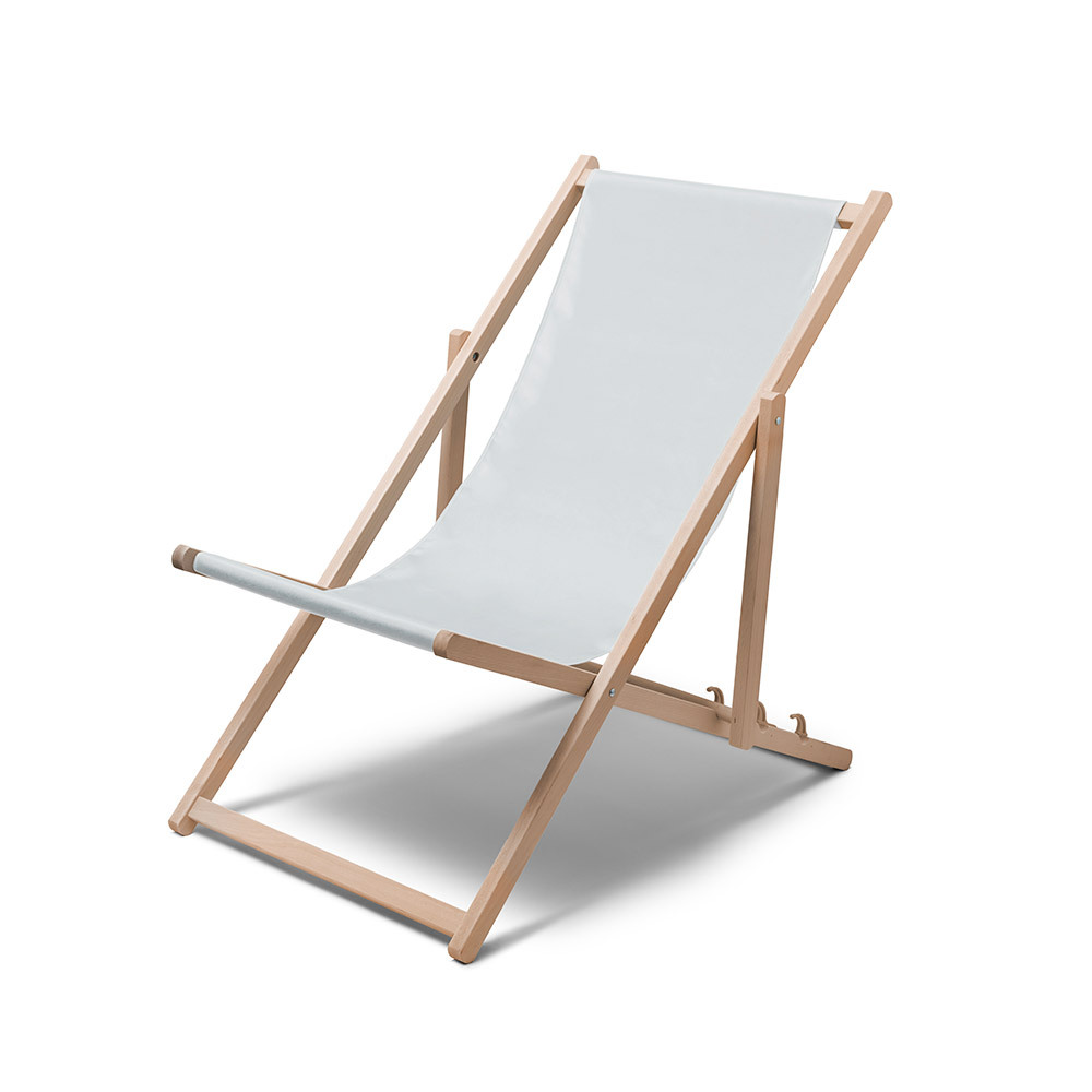 Choose the perfect standard colour to match your branding or event theme with the Beach Chair Relax Classic Standard Design. The Relax Classic offers timeless design at an affordable price. Featuring three recline positions, a sanded finish free of sharp edges, and safeguards to prevent accidental folding, it’s perfect for terraces, events, or chill-out zones. The self-change fabric system makes updates easy — just slide the wooden fixing bar into the fabric sleeve, wrap it over the frame, and secure it in place. Add an optional back banner for even more promotional space!