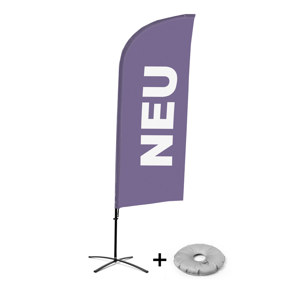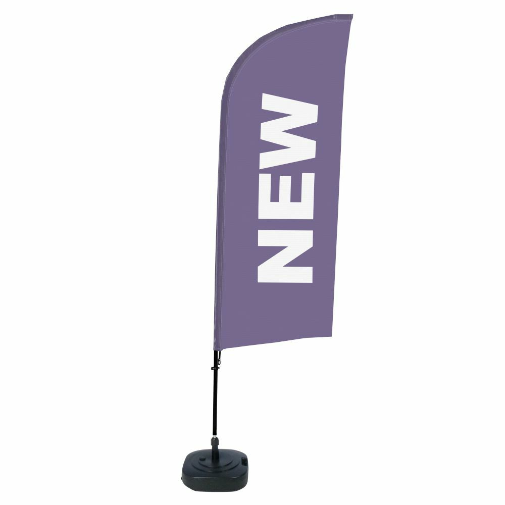 A popular Beach Flag that fits everywhere, from gas station to shopping centres, hospitality sector or events. A thick aluminium flag pole of 28 mm diameter with a standard print design in wind shape and a Water Tank or Cross-base. Choose the print design for your occasion. A great flag for your indoor and outdoor advertisement.