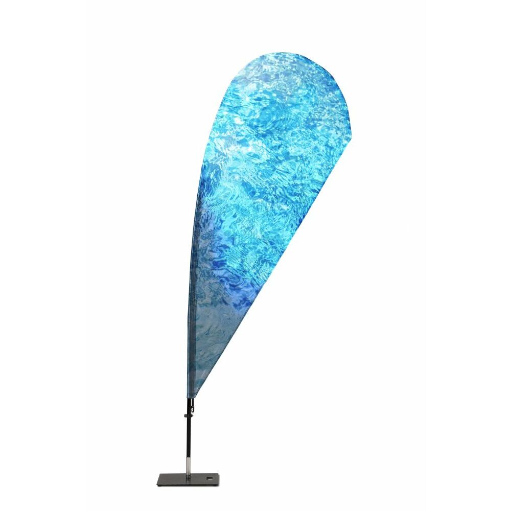 The Beach Flags are printed dye sublimation direct print. This means that the printer directly prints on the fabric, and after it the ink sublimated into the fibers in the heat press. An advantage of the direct sublimation print is that 80% of the print transfers onto the other side of the fabric, which is the best proportion for single-sided flags.
