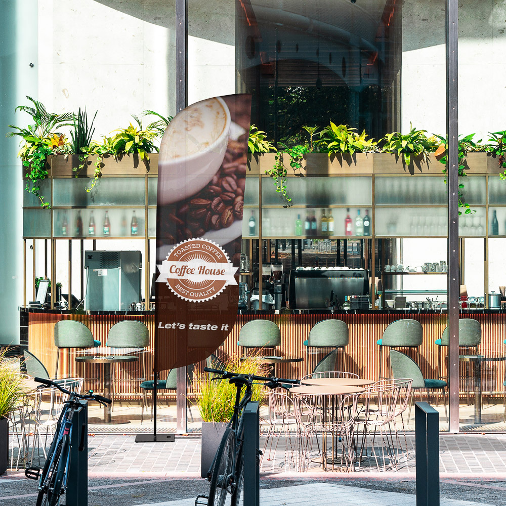 Thanks to our new partnership with market leading producer of Eco printing materials, we can provide these eco friendly dye sublimation prints. All the same great quality, only with a little extra love for the environment. Dye Sublimation on Recycled print material (Wind Green): Suitable for all single-sided Beach Flag prints (Alu, Fiber and Budget). The material is B1 fire rated, which makes it an ideal and safe material to use at shops, exhibitions, events, POS, retail, horeca facilities or any other public spaces.