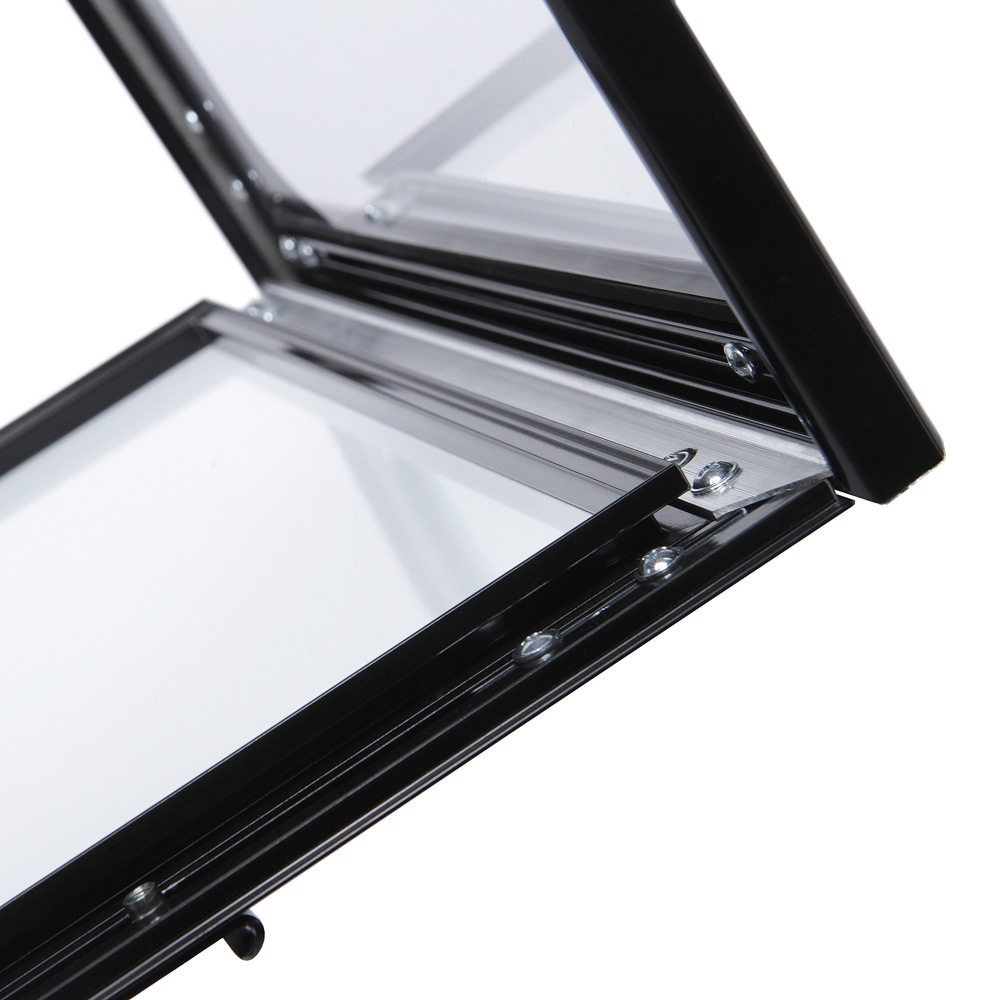 Showcase your offers with style using the Black Lockable Menu Stand / LED. Its slim aluminium pole adds an elegant touch while the heavy steel base keeps it firmly in place. Keep your 2 x A4 pages secure in the lockable showcase using magnets. Choose the LED version to make your message shine anytime!