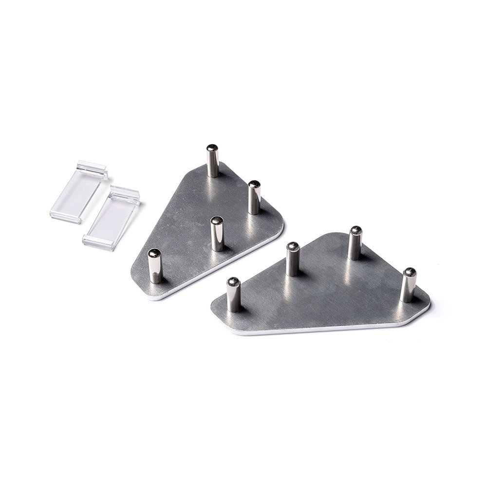 Upgrade your Brightbox Pro Flex Wall with Corner Connectors to easily create an eye-catching L-shaped wall. These Corner Connectors allow you to transform a straight wall into an impressive corner stand. The Corner Connector is quick and simple to install, simply place it on top and bottom of the frames to securely connect two Brightbox Pro Flex Walls at a 90° angle. Please note that the Corner Connectors are not included with the Brightbox Pro Flex Wall and have to be ordered separately.