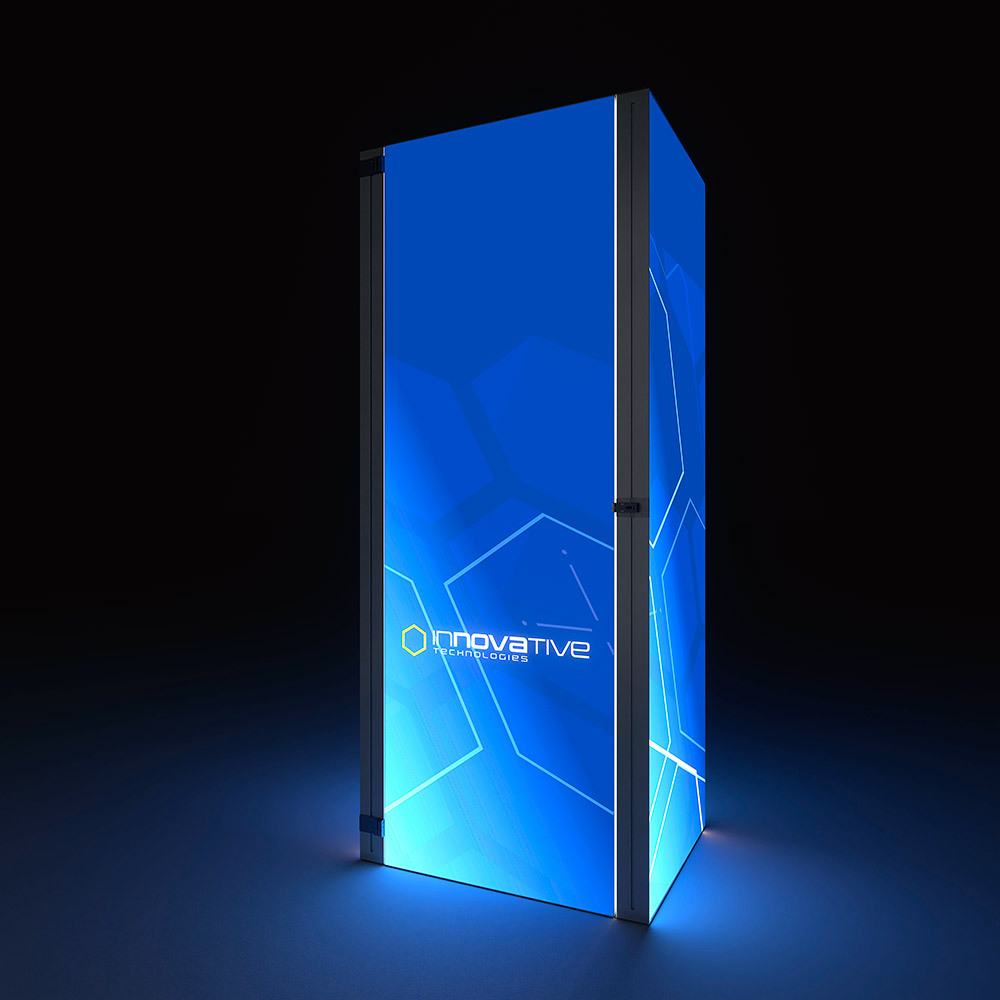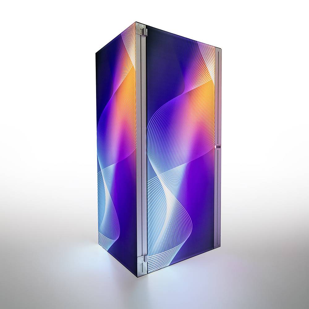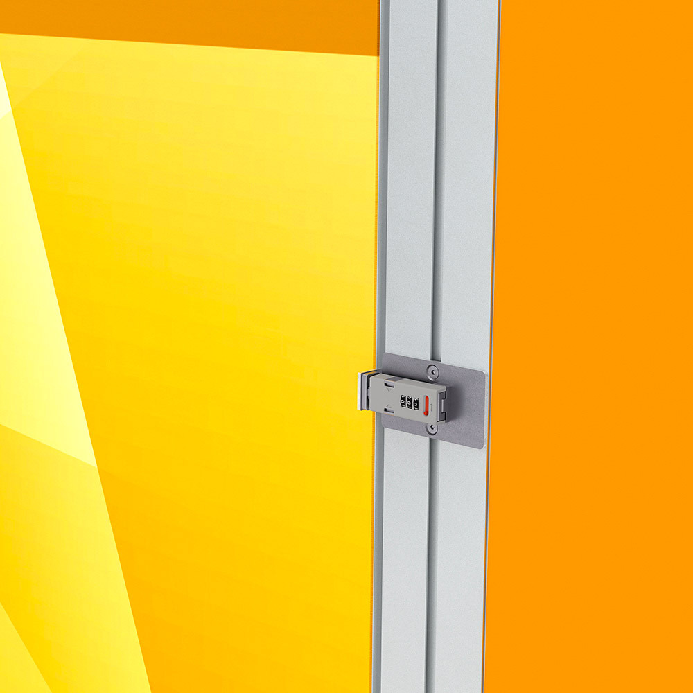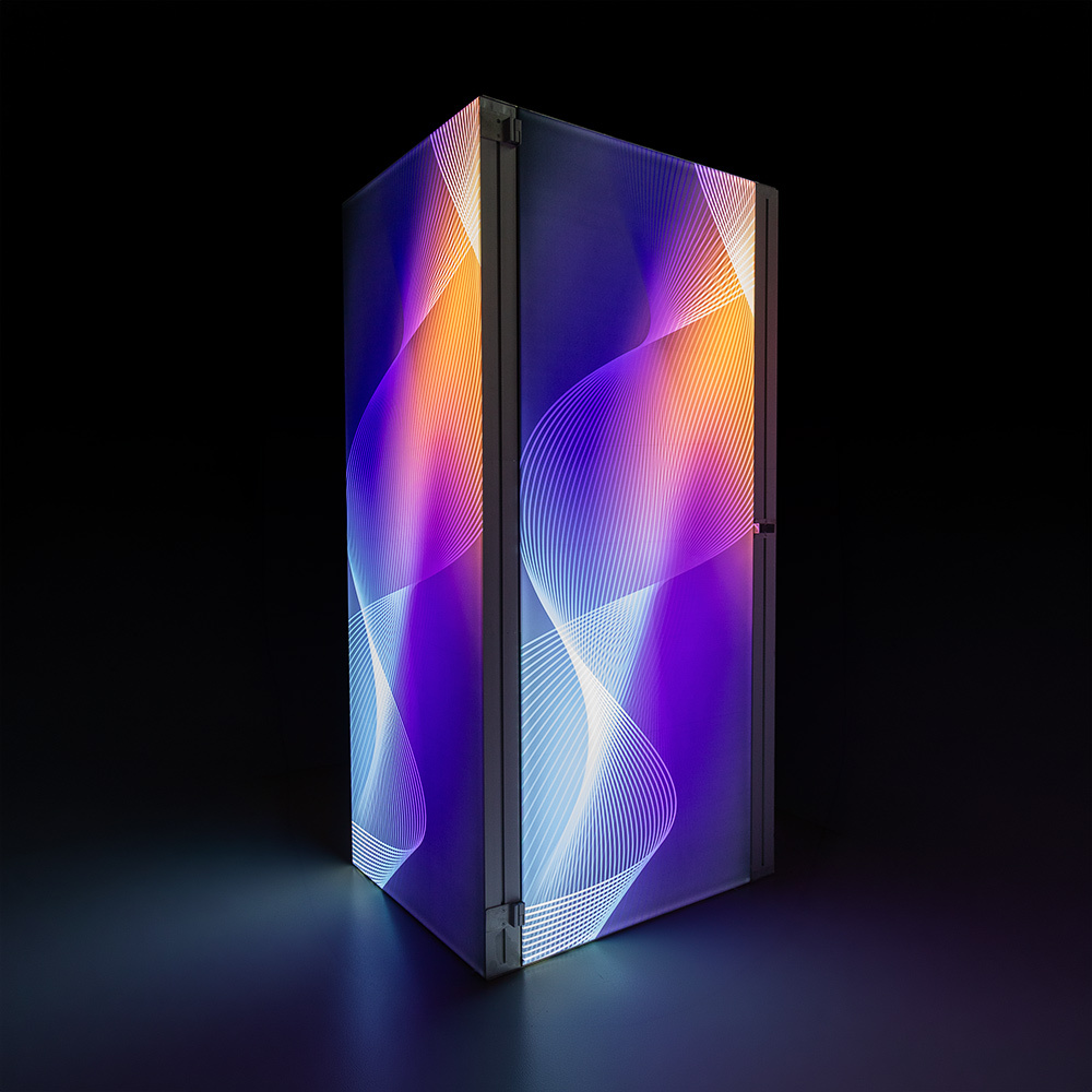 Keep your personal belonings secure while making an impeccable impression at any event with the Brightbox Pro Flex Storage Set. The sleek silver aluminium frame of 120 mm fits seamlessly with the Brightbox Flex Pro setup. Equipped with a built-in lock, it keeps your items safe while allowing easy access whenever needed. The illuminated, branded graphics blend effortlessly with your design, combining style and practicality.