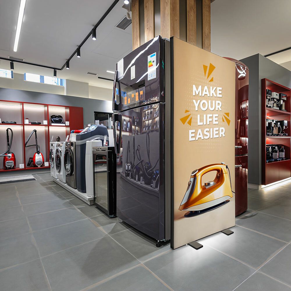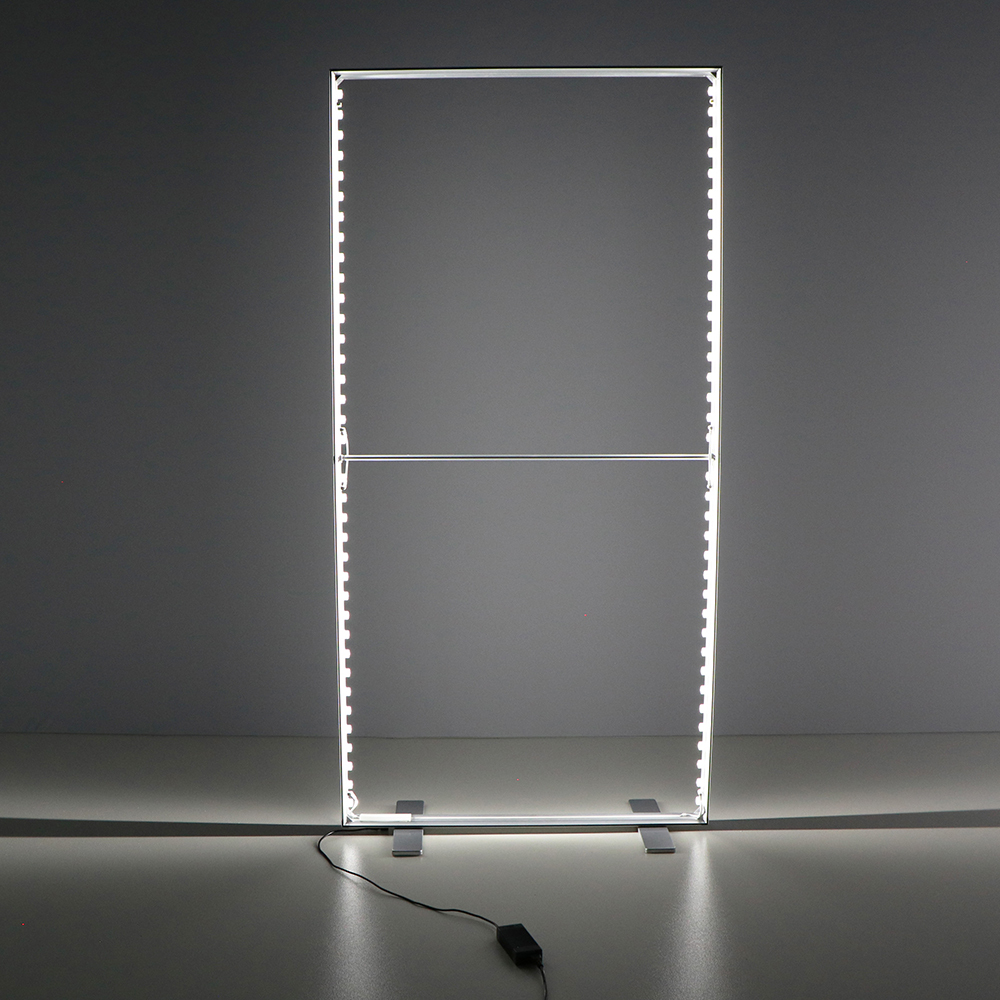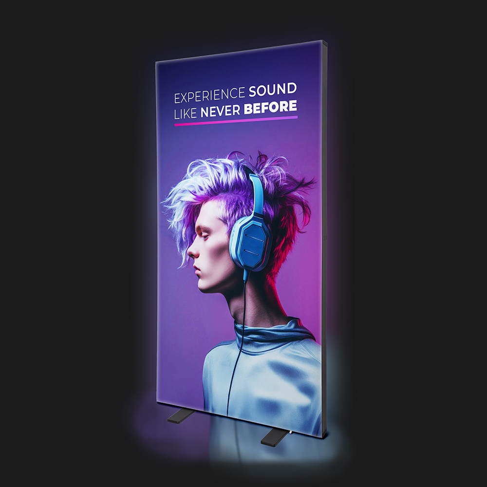 Lumina takes the lead of high quality standards for illuminated graphics. The Lumina material is a 100% Polyester (PES) woven fabric of 190 g/m2 and features a premium light diffusion coating. It’s considered the highest standard for Silicone Edge Graphics (SEG) and it is an excellent choice especially for large graphics. You can fold it for transportation without worrying about visible creases in the print. It combines exceptional quality with practicality. The Lumina material is B1 fire rated, which makes it ideal and safe material to use at exhibitions and events.