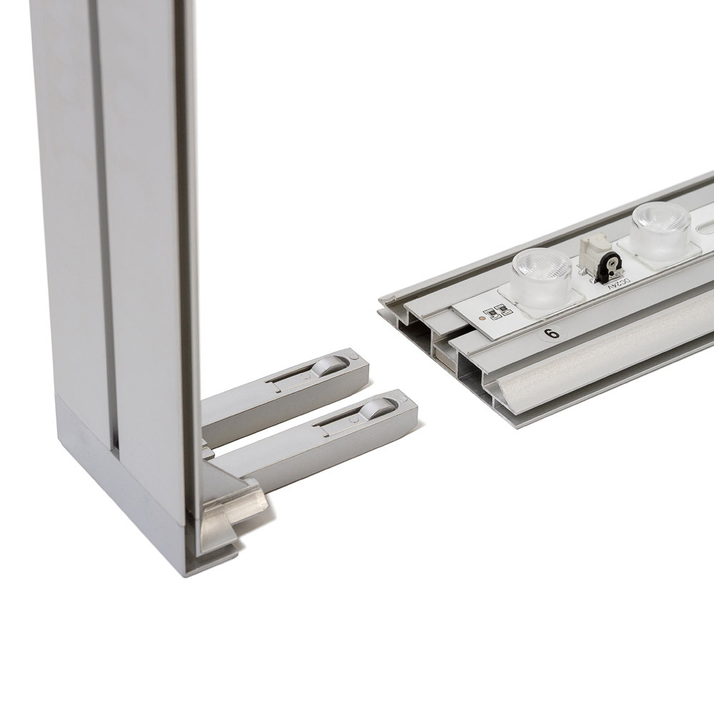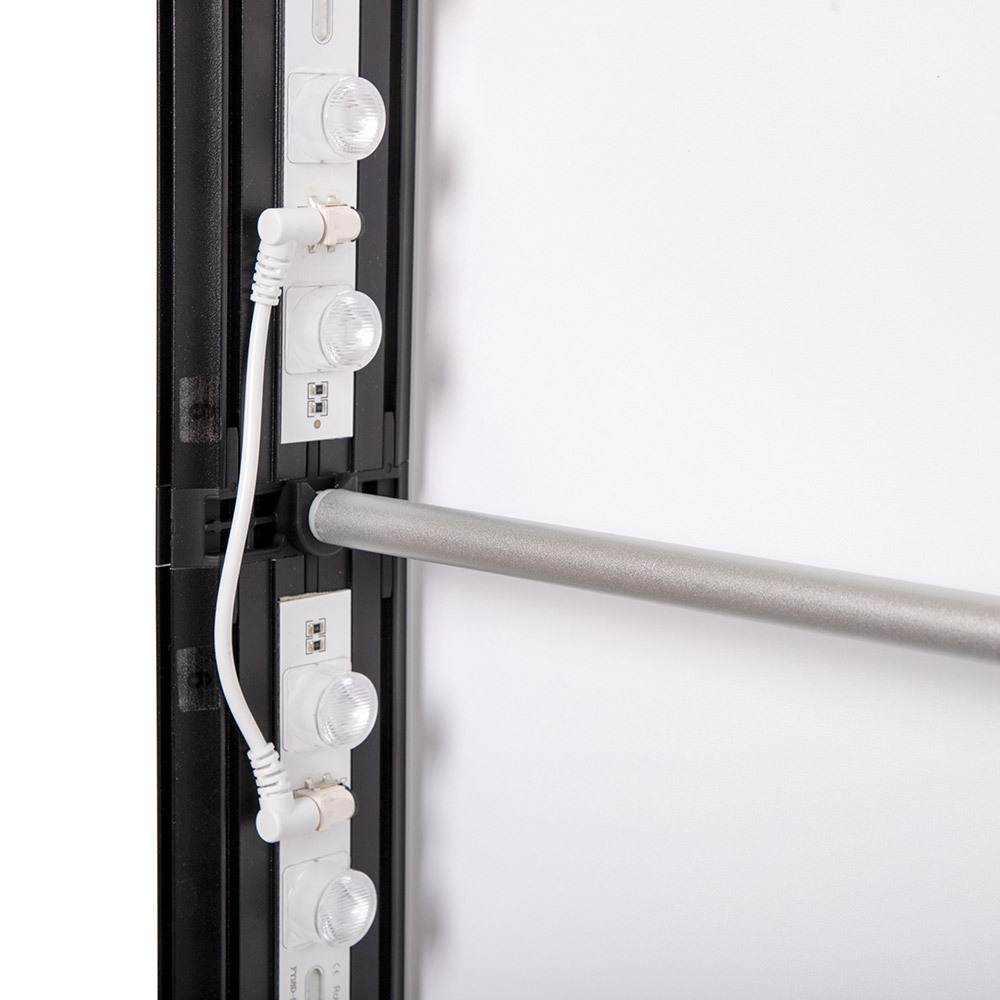Unlock new opportunities with the Brightbox Double — the ultimate solution for double-sided visibility. Featuring a sleek 80 mm aluminum profile in silver or black, it seamlessly blends into any setting. Its magnetic sides let you link multiple displays for a larger illuminated presentation. Quick setup, versatile print material options, and easy updates make it ideal for trade shows, retail, and corporate events.