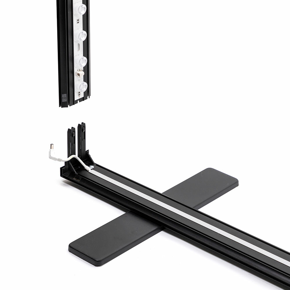 The LED lights are centrally placed inside; the transformer and cable are attached to the side