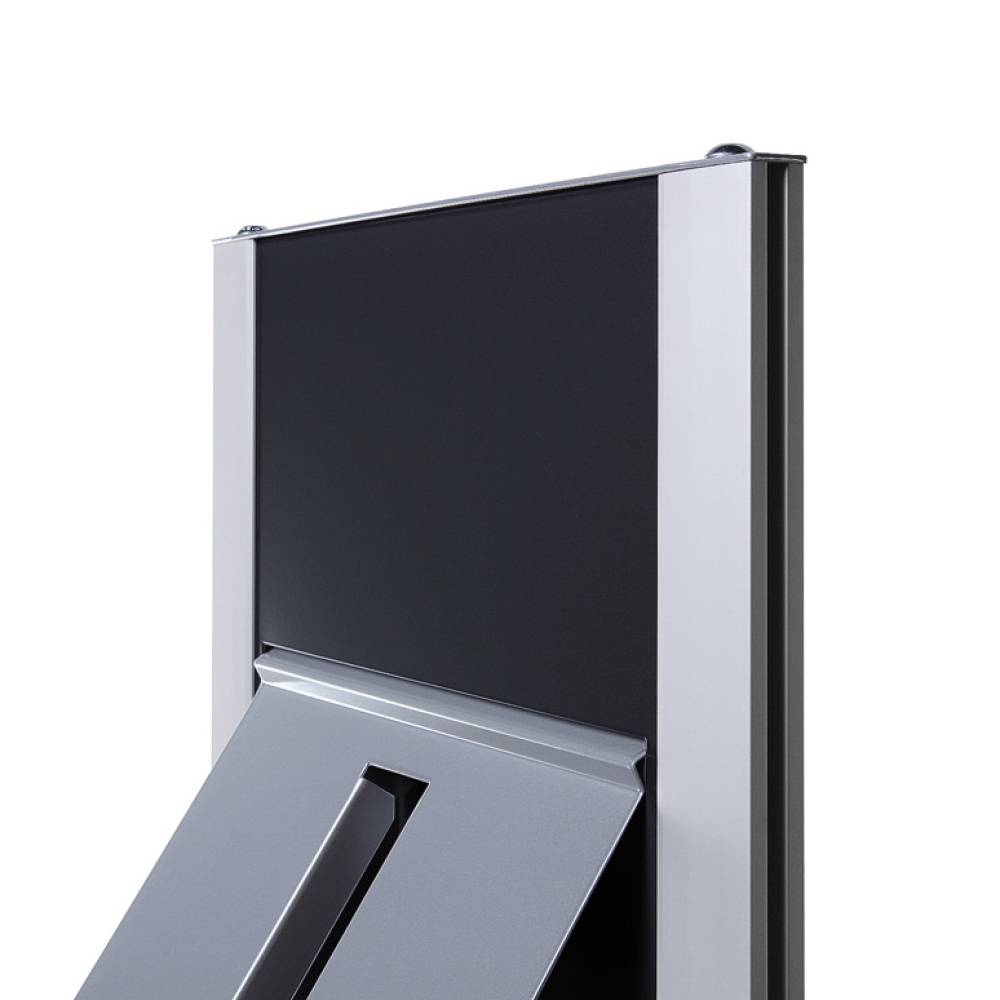A totem with metal brochure shelves or with transparent brochure pockets, both are possible with the Brochure Rack Totem! A modular and freestanding rack, easy to assemble. Organise the shelves and pockets to your preference. Choose the colour that suits the surrounding elements. Available in designer matt black or traditional minimalistic silver. Display your brochures in the bestseller Brochure Rack Totem!