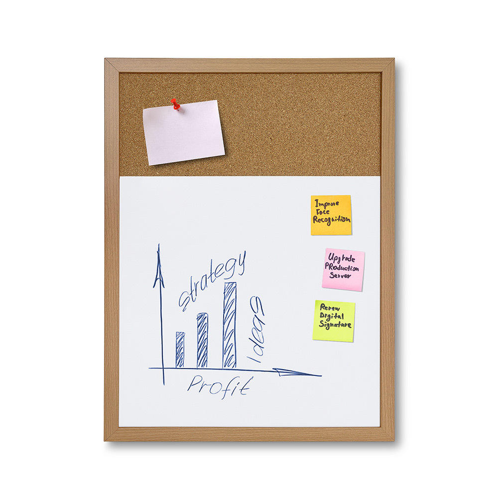 The Combi Board - Wooden Whiteboard / Cork is perfect to use in offices or in the hospitality industry. Write down your to do list of the day with chalkmarkers or hang fun team building pictures in your office canteen.