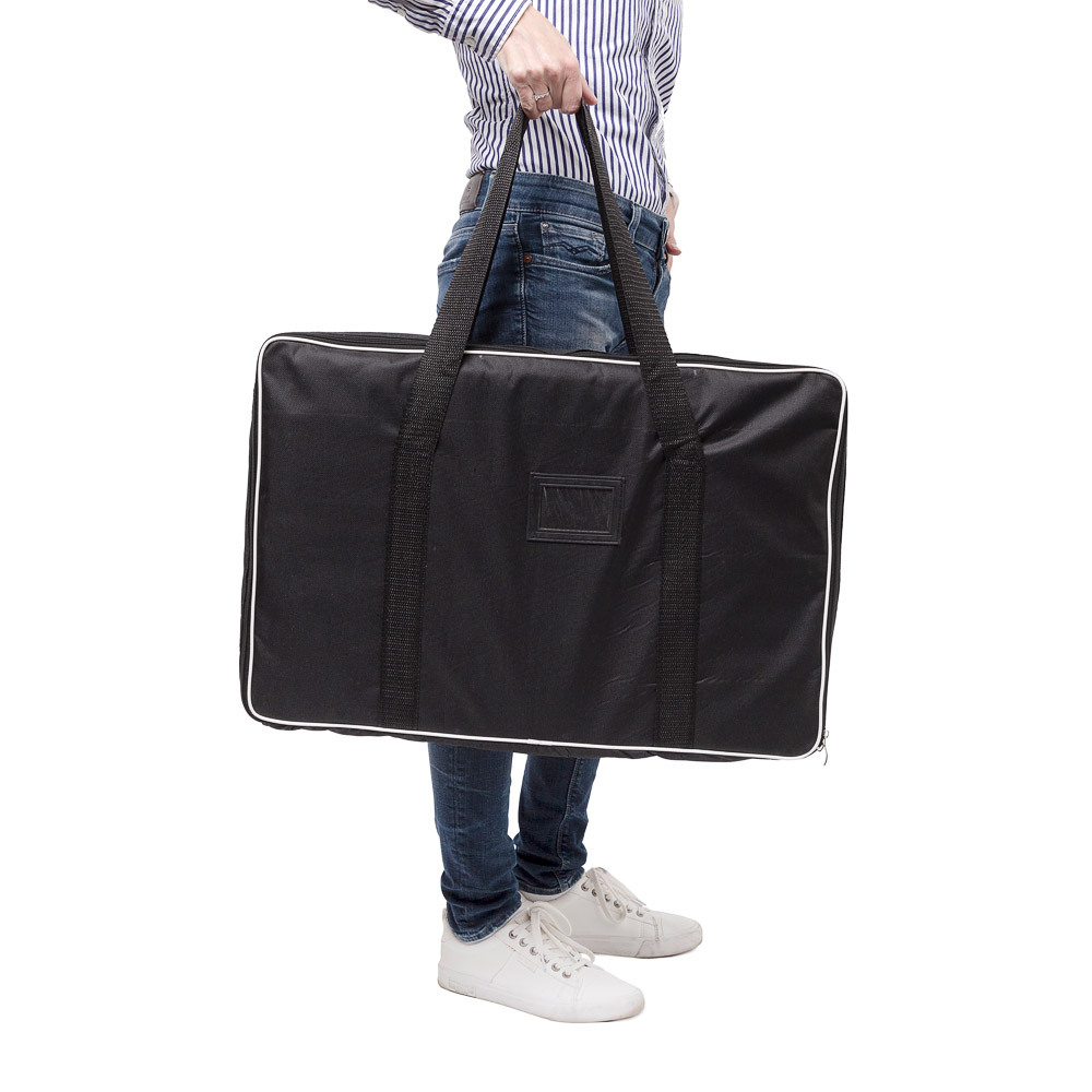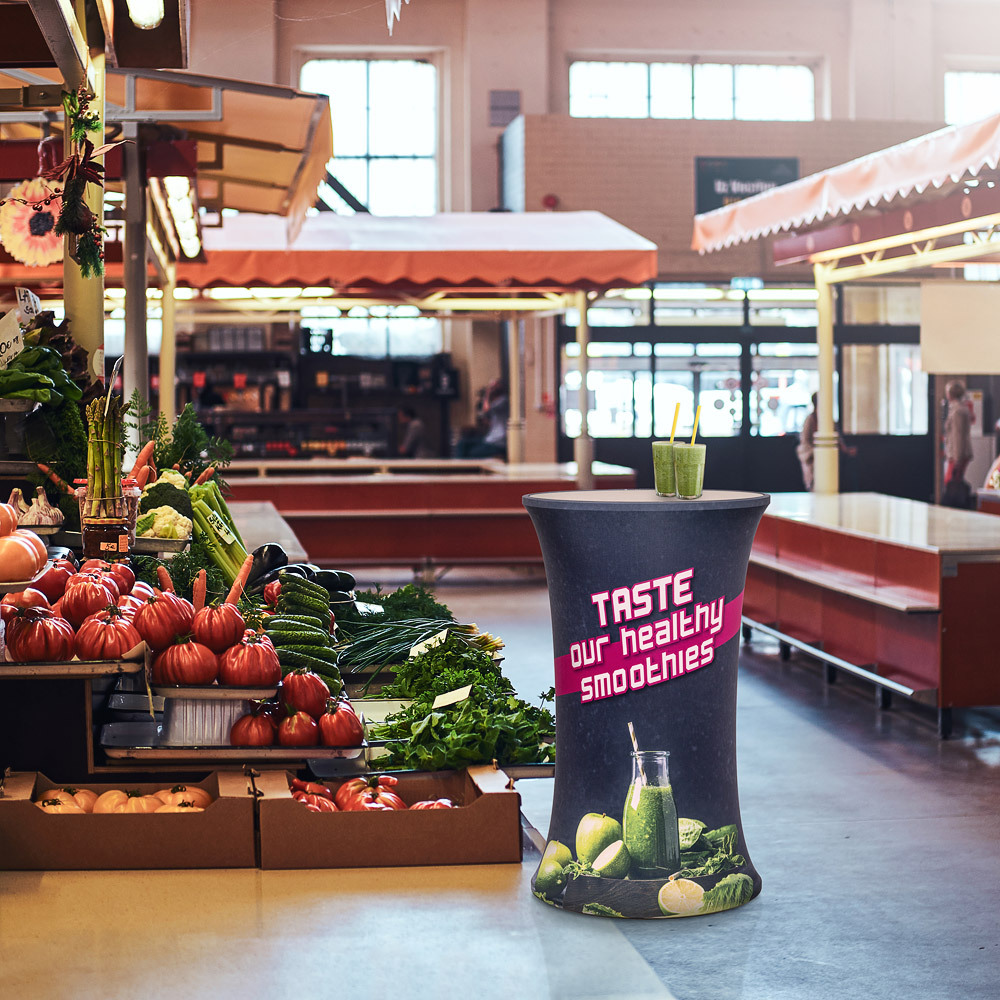 Go for a sleek and wrinkle-free promotion with the Counter Easy Oval. Its slim design ensures your display fits effortlessly into pop-up stands, exhibitions, and events. The stretch fabric with a silicone edge slides seamlessly onto the black tabletop, creating a smooth, edgeless look. Printed with dye sublimation, it delivers vibrant, long-lasting colours, while the included carry bag makes transport effortless. Stylish and ready for any promotion, it guarantees an eye-catching presence every time