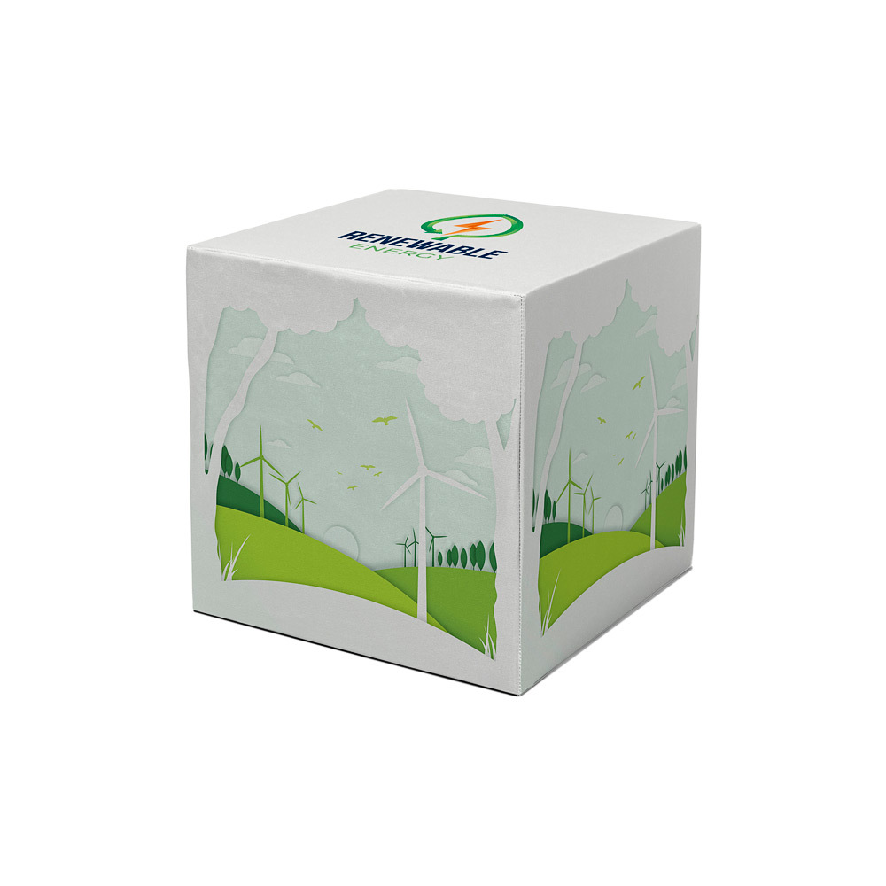 Attract attention from all sides with this lightweight, branded cardboard seat cube! Perfect to use at exhibitions, hospitality areas, public spaces or covered outdoor events. Fully recyclable, reinforced with inner ribs, the Cube Seat Fold is made of high quality cardboard material with a water protection layer. Delivered flat-packed with an easy assembly guide. Simply assemble the cube, apply the printed graphic over it, and close the bottom with Velcro. The graphic can be removed in just seconds and replaced with a new one for your next promotion. Combine practical seating with high-visibility branding.