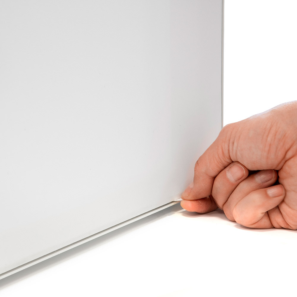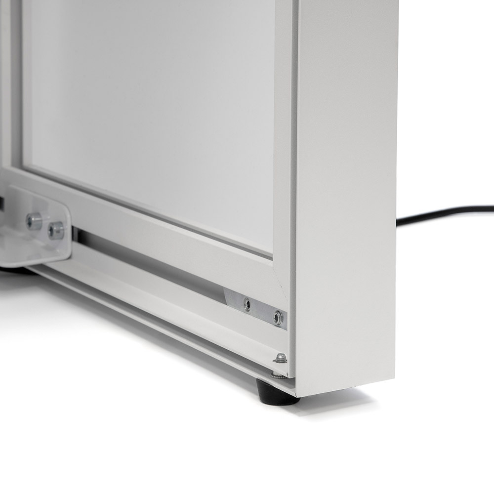 The Digital Counter Futuro delivers everything you need for a standout presentation—right out of the box. Its sleek design fits any space: the 55” Samsung screen shines horizontally in a sleek black frame, while the 32” vertical screen comes in black or white frame. Both versions feature customisable SEG side graphics that match the housing colour as standard, along with an shelf to keep cables and materials neatly out of sight. Plug & play your content 24/7 via USB, or manage it remotely with the optional Samsung VXT CMS.
