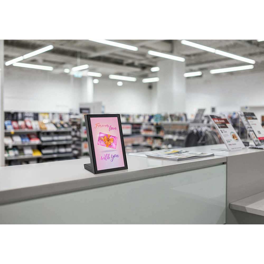 Share your message in a modern, dynamic way with the Digital Countertop Nova! Featuring a vibrant 13” Samsung UHD screen, this compact L-shaped display provides stunning visuals without taking over your counter. Its fingerprint-resistant paint finish keeps it looking clean and professional with minimal upkeep. Perfect for reception desks, retail counters, and service areas. Delivered fully assembled and ready to use right out of the box. Plug&play your content 24/7 via USB, or upgrade to the full experience with Samsung VXT CMS!