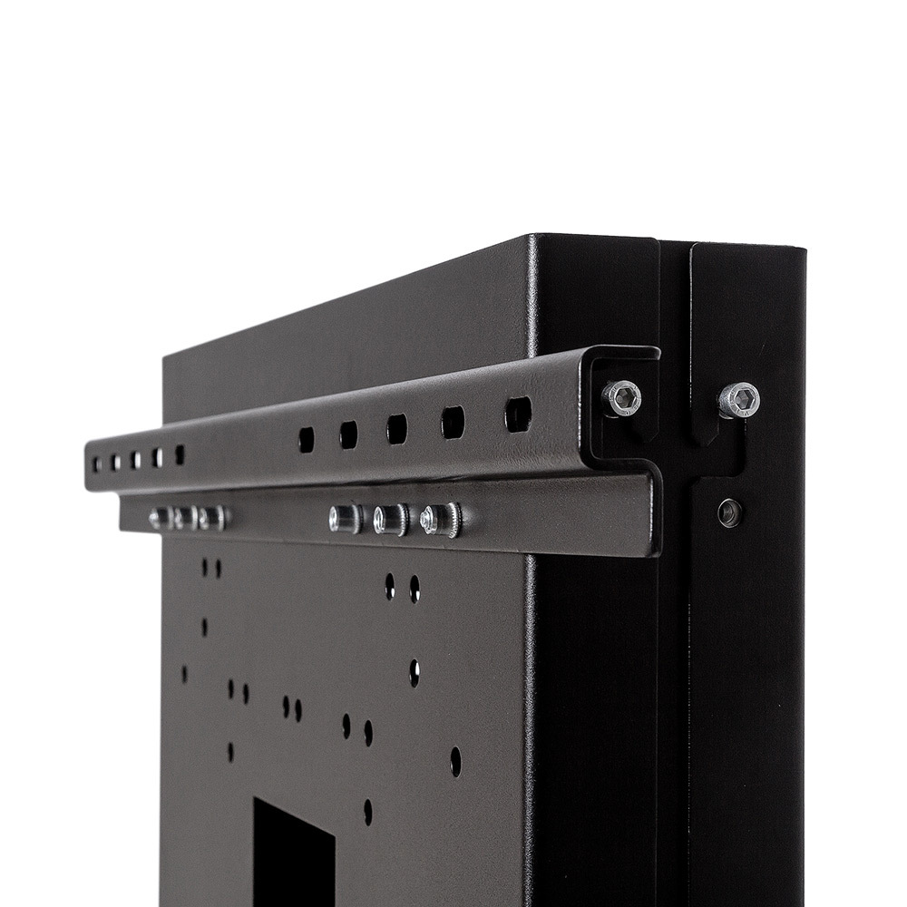 The Digital Shop Window Display provides a striking platform to showcase your content. The sturdy steel construction supports 43", 50", or 55" Samsung screens, while the elegant twin-post design and metal base add a touch of style to shop windows, offices, or meeting rooms. Compatible with most VESA-mounted screens, it works in both portrait and landscape orientation. Plug & play your content 24/7 via USB, or manage it remotely with optional Samsung VXT CMS!