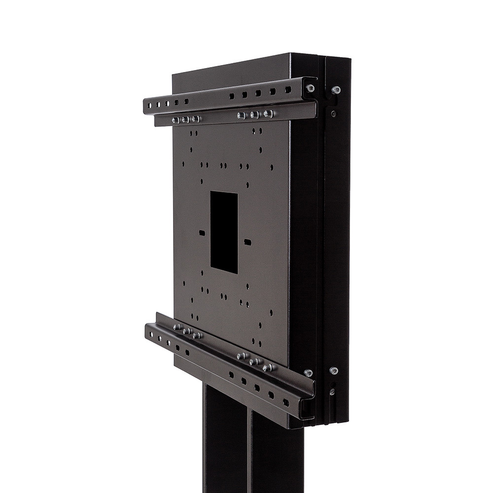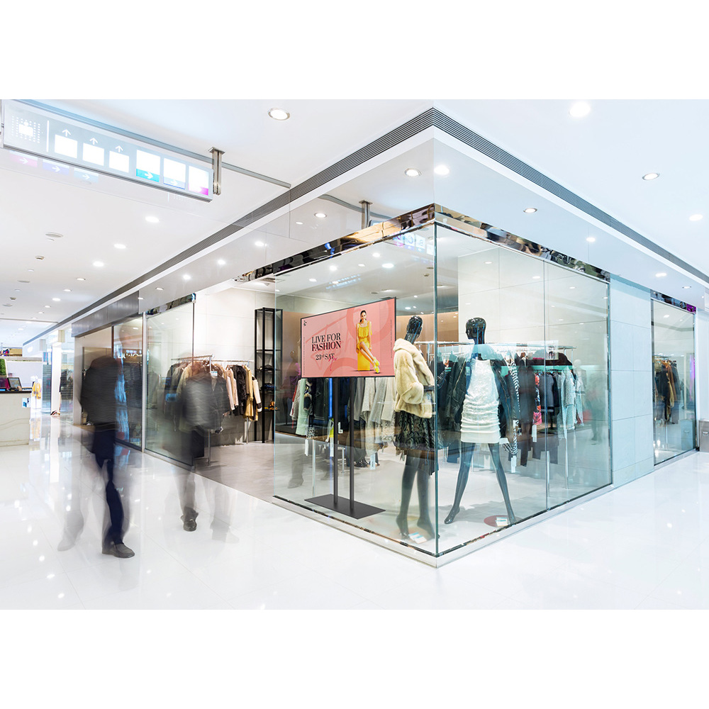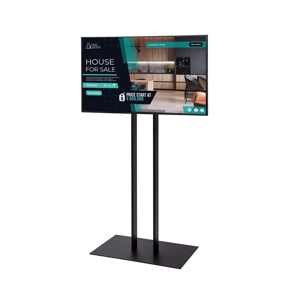 The Digital Shop Window Display provides a striking platform to showcase your content. The sturdy steel construction supports 43", 50", or 55" Samsung screens, while the elegant twin-post design and metal base add a touch of style to shop windows, offices, or meeting rooms. Compatible with most VESA-mounted screens, it works in both portrait and landscape orientation. Plug & play your content 24/7 via USB, or manage it remotely with optional Samsung VXT CMS!
