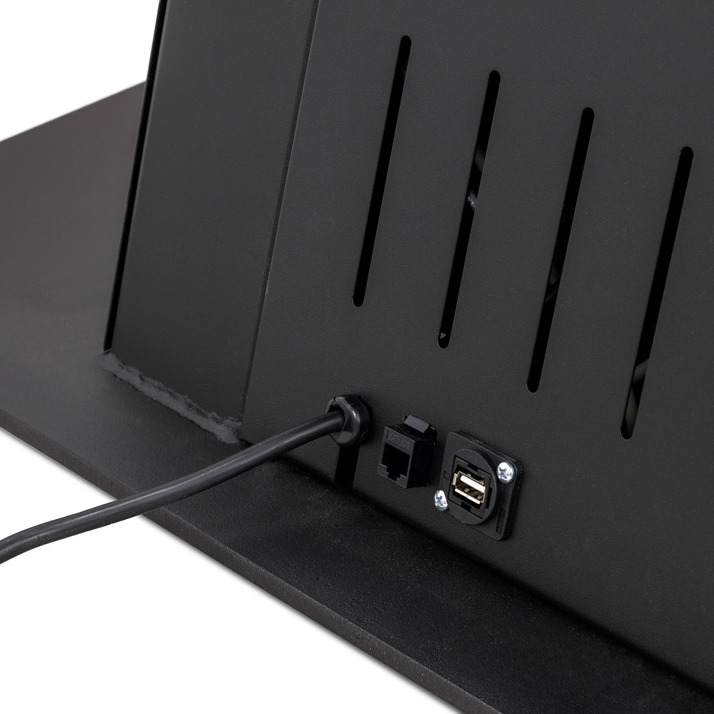 The lockable housing is made to protect and complement the professional 43” and 50” Samsung screen inside. The Digital Kiosk can be delivered including touch foil to make your message interactive. For more information about this option, please contact your sales person. The powder coated steel base is 8mm thick and has rubber feet underneath to protect your floors. The screen is tilted at 20 degrees, so everyone can have a clear look at it. Ready for 24/7 service and easy Plug & Play via USB and remote control or WiFi, you can change your message on any given moment.