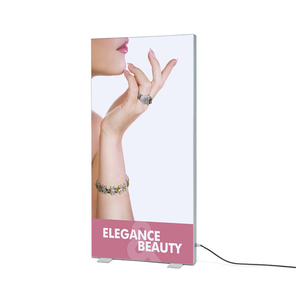 Change your tensioned fabric print easily for the next advertisement or promotion, without any tools or need to move the Textile Frame Freestanding Model.
