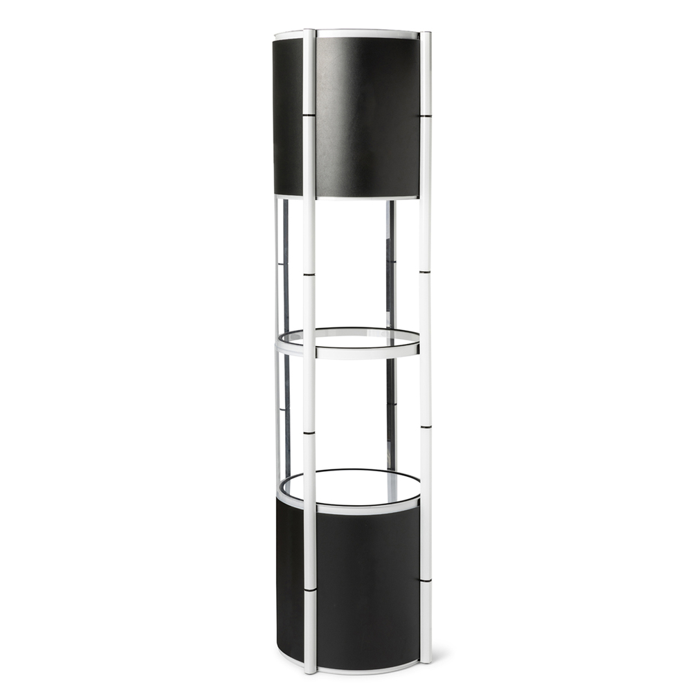 Create a stunning 4-level showcase in seconds with the Flex Tower. Its twist-and-go setup makes it perfect for events and promotions. It comes with 16 transparent PET panels as standard, but you can also choose the optional custom-printed HIPS boards to replace them, giving you a completely unique look that suits your style. With the built-in spotlight on the top, you literally put your products in the spotlight!