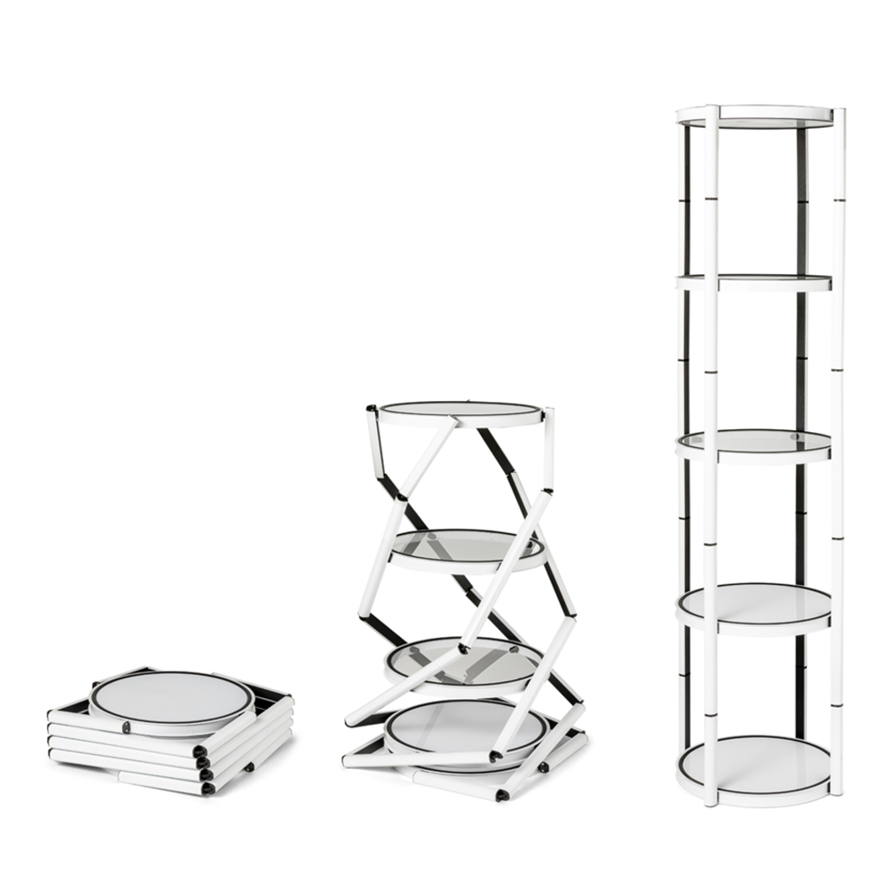 - Completely foldable showcase with four levels