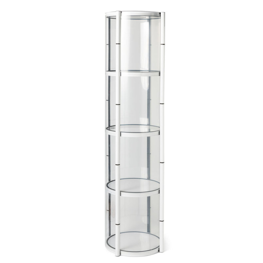 Solid aluminium frame with transparent shelves