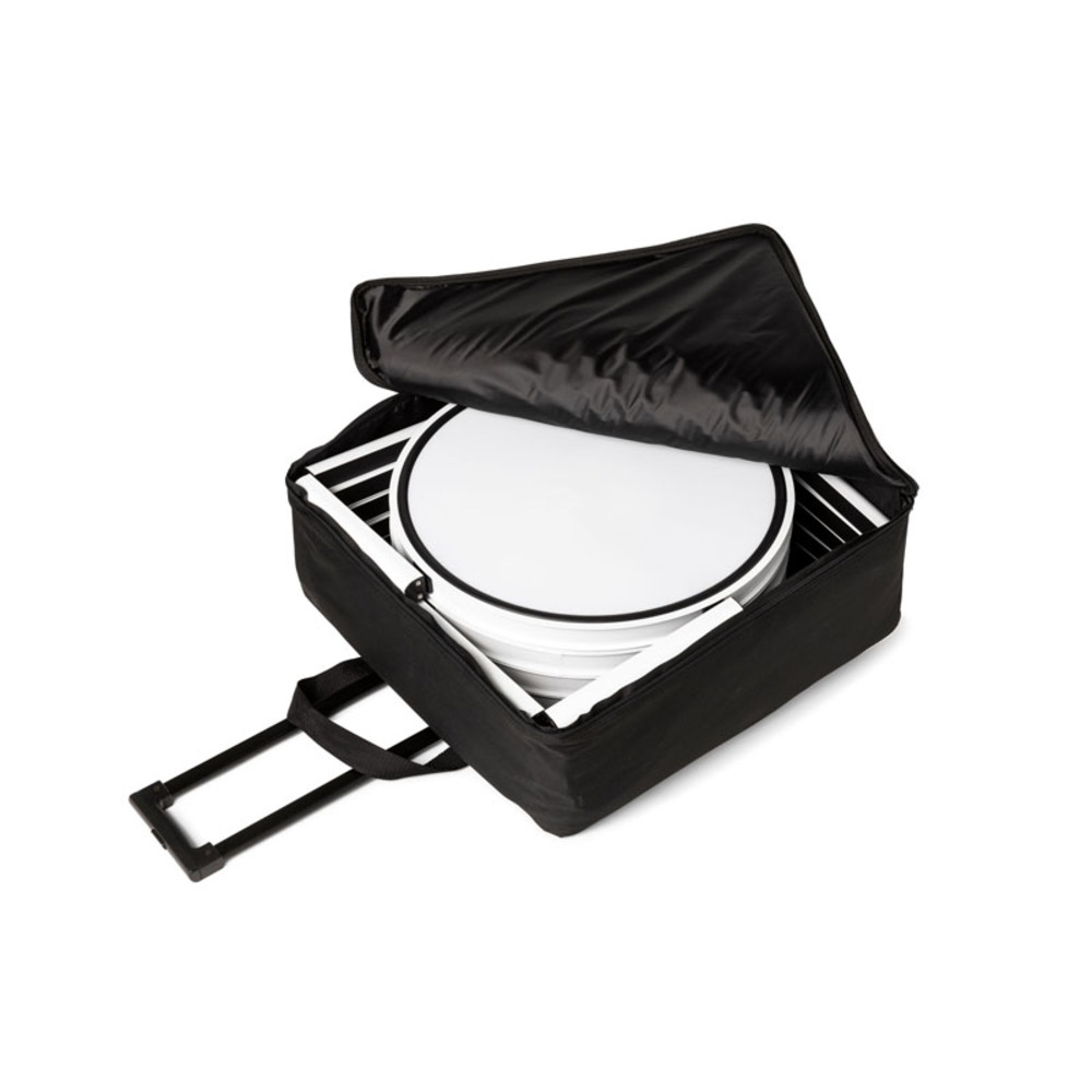 Includes padded soft trolley with wheels and 16 PET panels