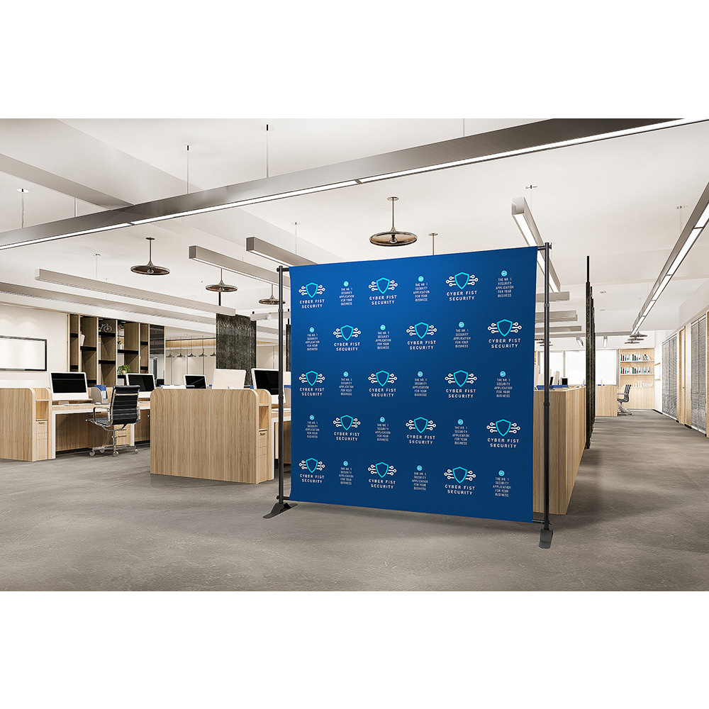 Give your walls some life with the Flex Wall. The Flex Wall has telescopic poles which are adjustable in height and width. Perfect to reuse at every exhibition stand, even though the stand may vary in size. Easy to readjust to match the size of your room, conference hall, restaurant or showroom. The tubes of the Flex wall L-size are a bit thicker, in order to create an extra wide size. We can print multiple sizes graphics, so you will find a fit for every occasion. Contact your sales person for more information about the different sizes.