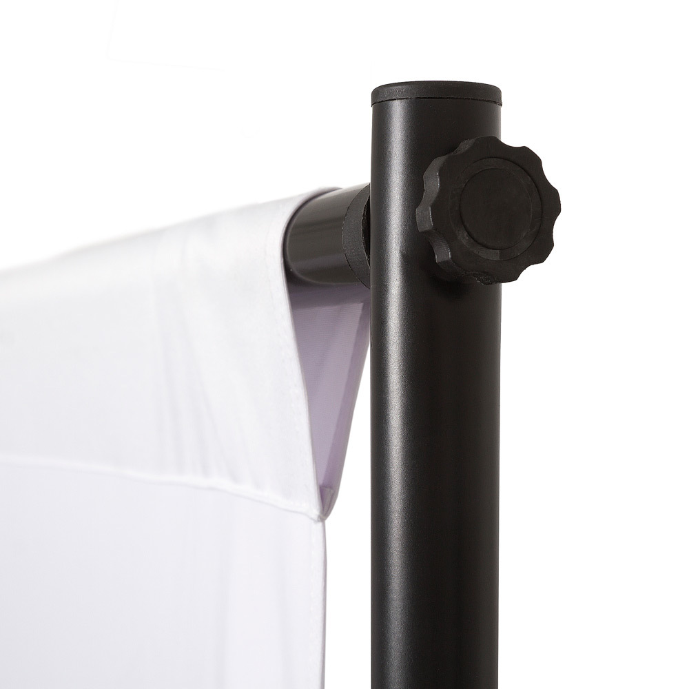 The matt black finish gives it a modern and luxurious touch, for an affordable price. The timeless design is a perfect addition for every occasion; use it as a backwall during exhibitions and conferences or show your promotions and offers on it. The locks of the Flex Wall L-size are extra strong with a turnable button on the outside of the tube.