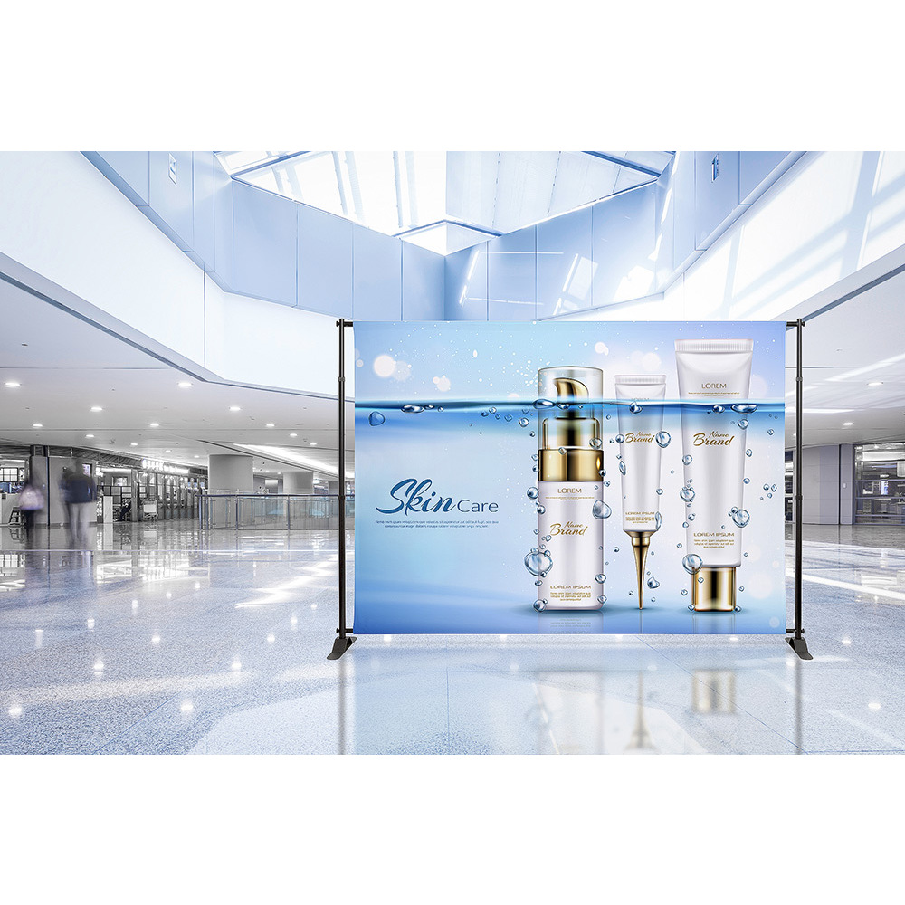 Give your walls some life with the Flex Wall. The Flex Wall has telescopic poles which are adjustable in height and width. Perfect to reuse at every exhibition stand, even though the stand may vary in size. Easy to readjust to match the size of your room, conference hall, restaurant or showroom. The tubes of the Flex wall L-size are a bit thicker, in order to create an extra wide size. We can print multiple sizes graphics, so you will find a fit for every occasion. Contact your sales person for more information about the different sizes.