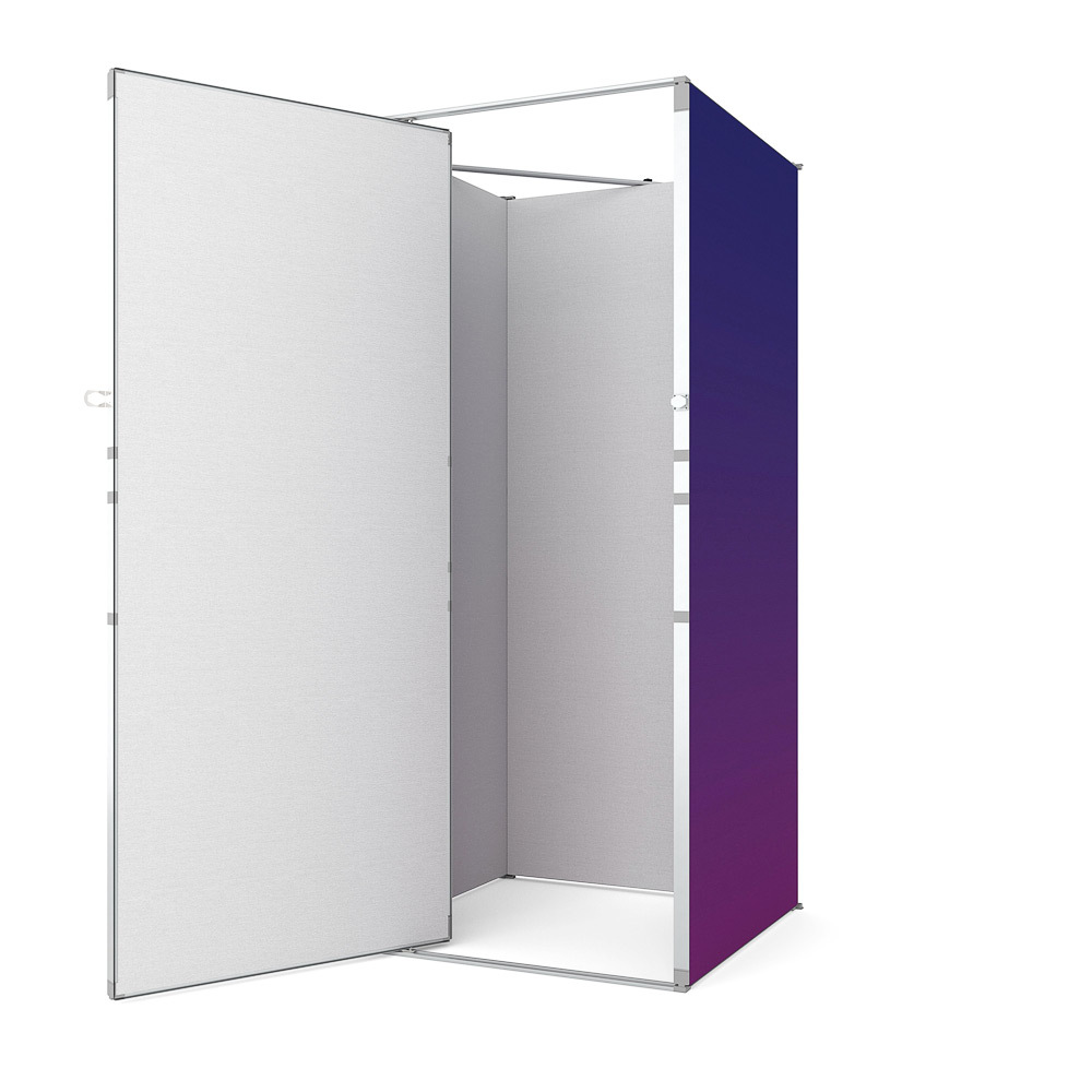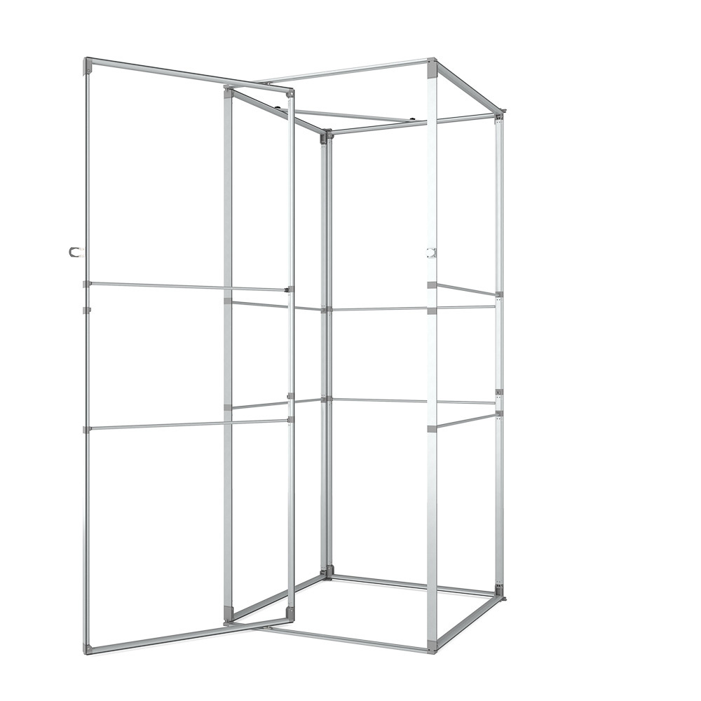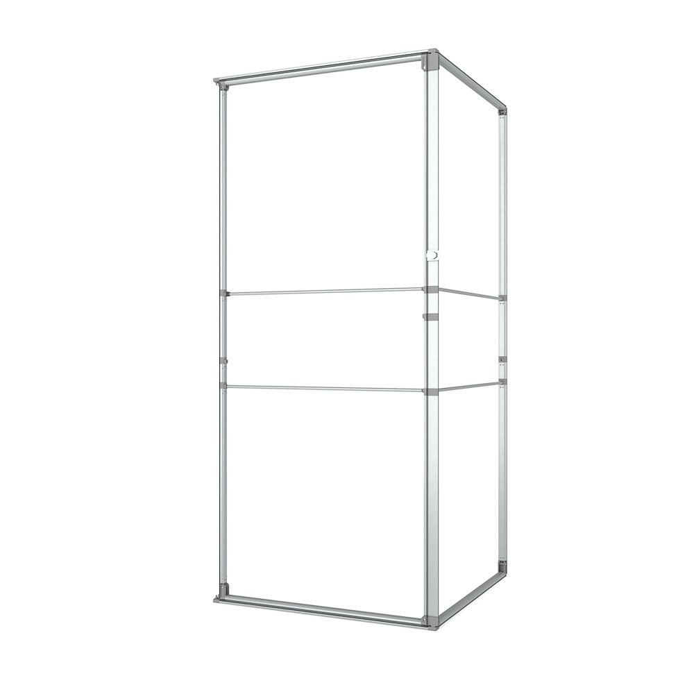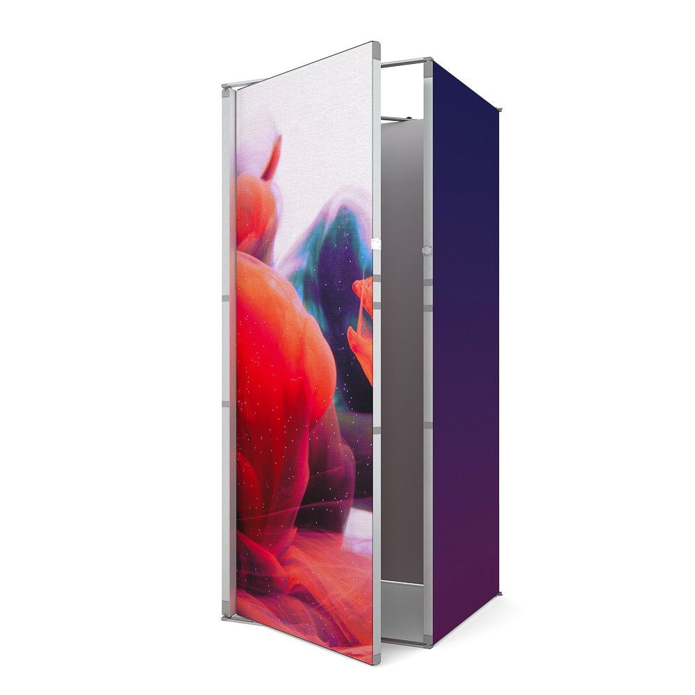 The FlexFrame Storage Set offers a hidden, secure repository with an aluminium corner reinforcement bar and coded lock. Available in 3 heights (200, 230 and 250 cm) and colour silver or black, to match with your FlexFrame setup. Tool-free setup with a sleek full-print design. Easily packed in the included padded bags - reusable and ready to go for any event. Complete your setup with 2 FlexFrame Walls and 4 graphics (2 for walls, 2 for storage), or go for double-sided exposure with 8 graphics in total.