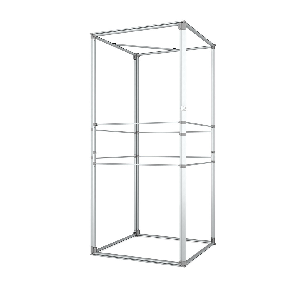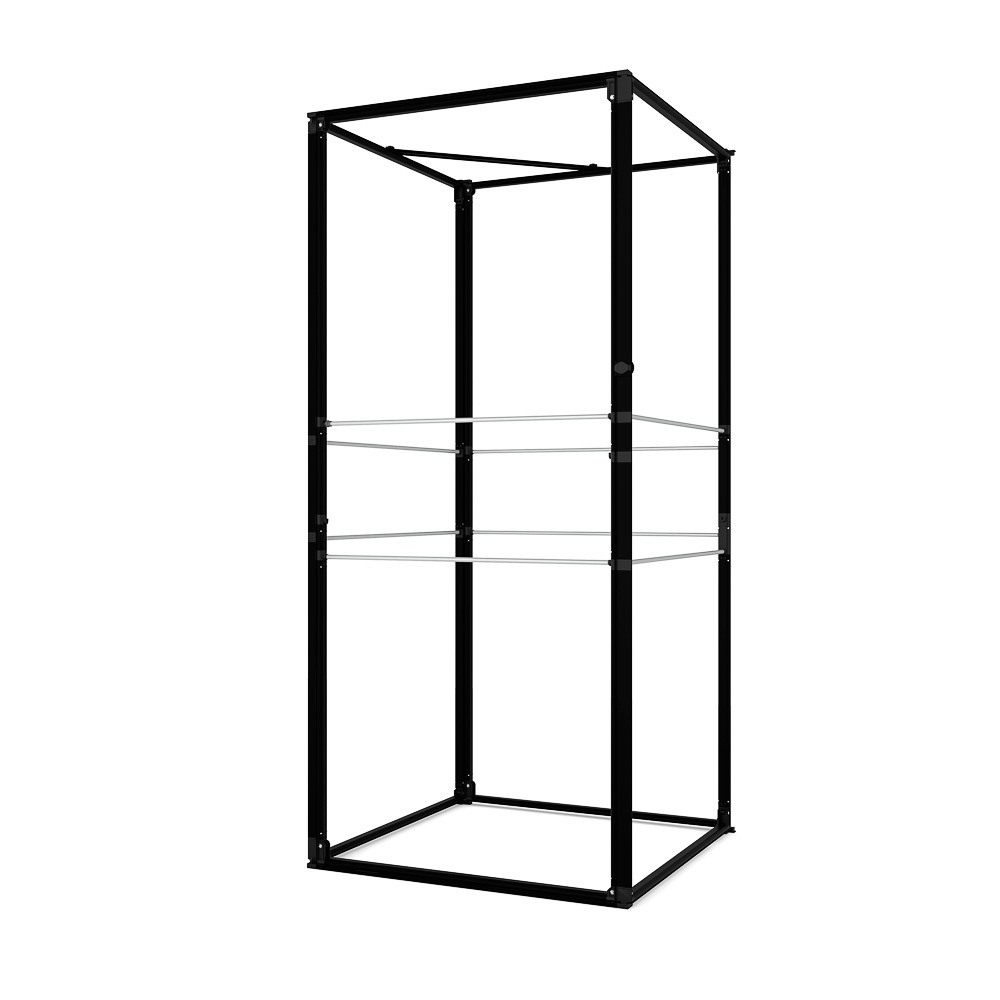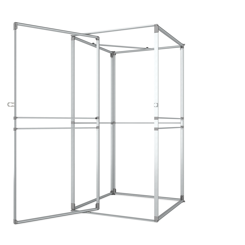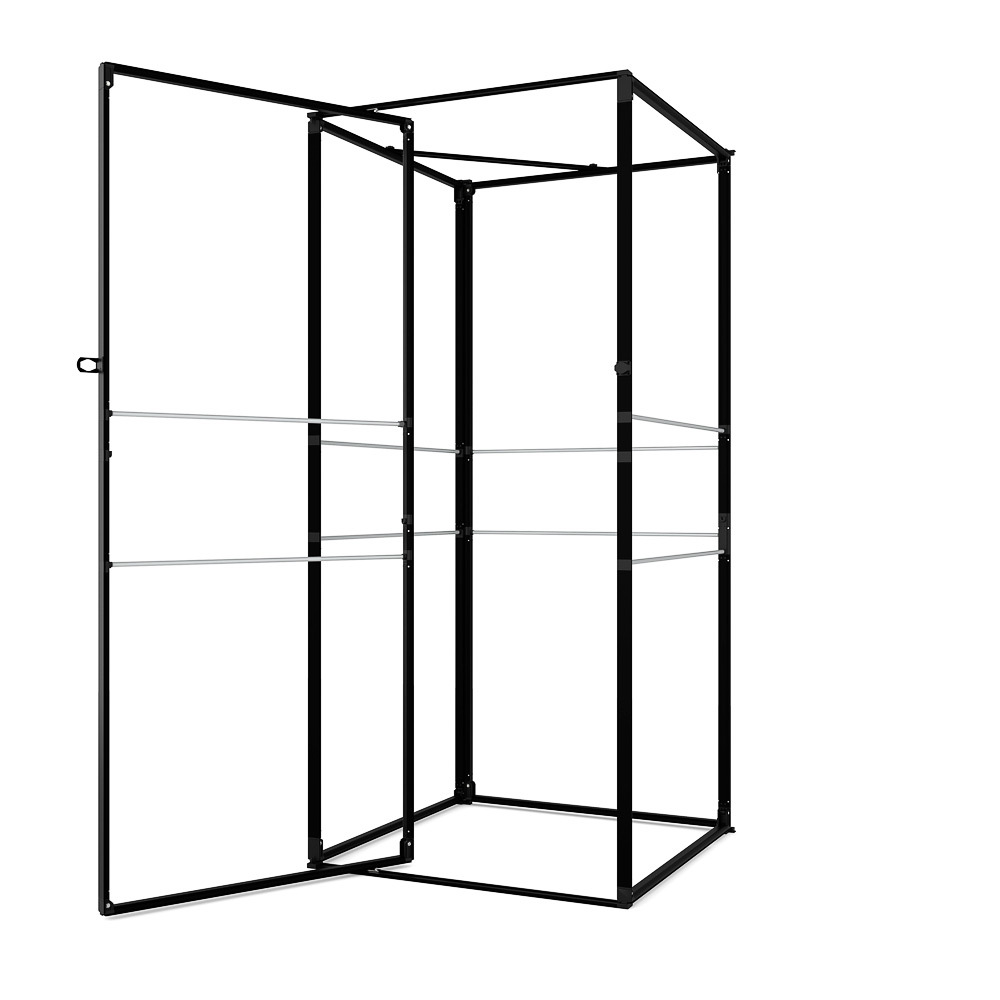 The FlexFrame Storage Set offers a hidden, secure repository with an aluminium corner reinforcement bar and coded lock. Available in 3 heights (200, 230 and 250 cm) and colour silver or black, to match with your FlexFrame setup. Tool-free setup with a sleek full-print design. Easily packed in the included padded bags - reusable and ready to go for any event. Complete your setup with 2 FlexFrame Walls and 4 graphics (2 for walls, 2 for storage), or go for double-sided exposure with 8 graphics in total.