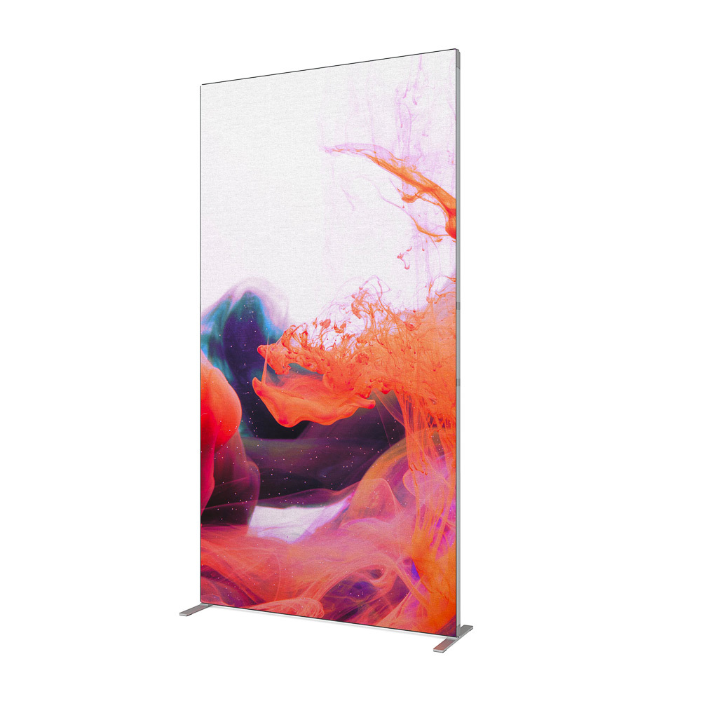 From promotions to exhibition stands, FlexFrame gives you the flexibility to create the perfect display. Crafted from durable aluminium with a silver or black finish, it ensures a seamless, professional look - ready to stand out! Combine multiple frames to create an eye-catching setup, supporting graphics up to 5 m wide. Including a soft padded carry bag, two steel feet and two connectors for an easy transport and tool-free assembly. Reusable, sustainable, and built to elevate your presence instantly!