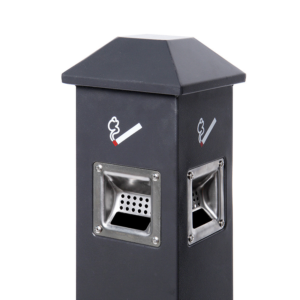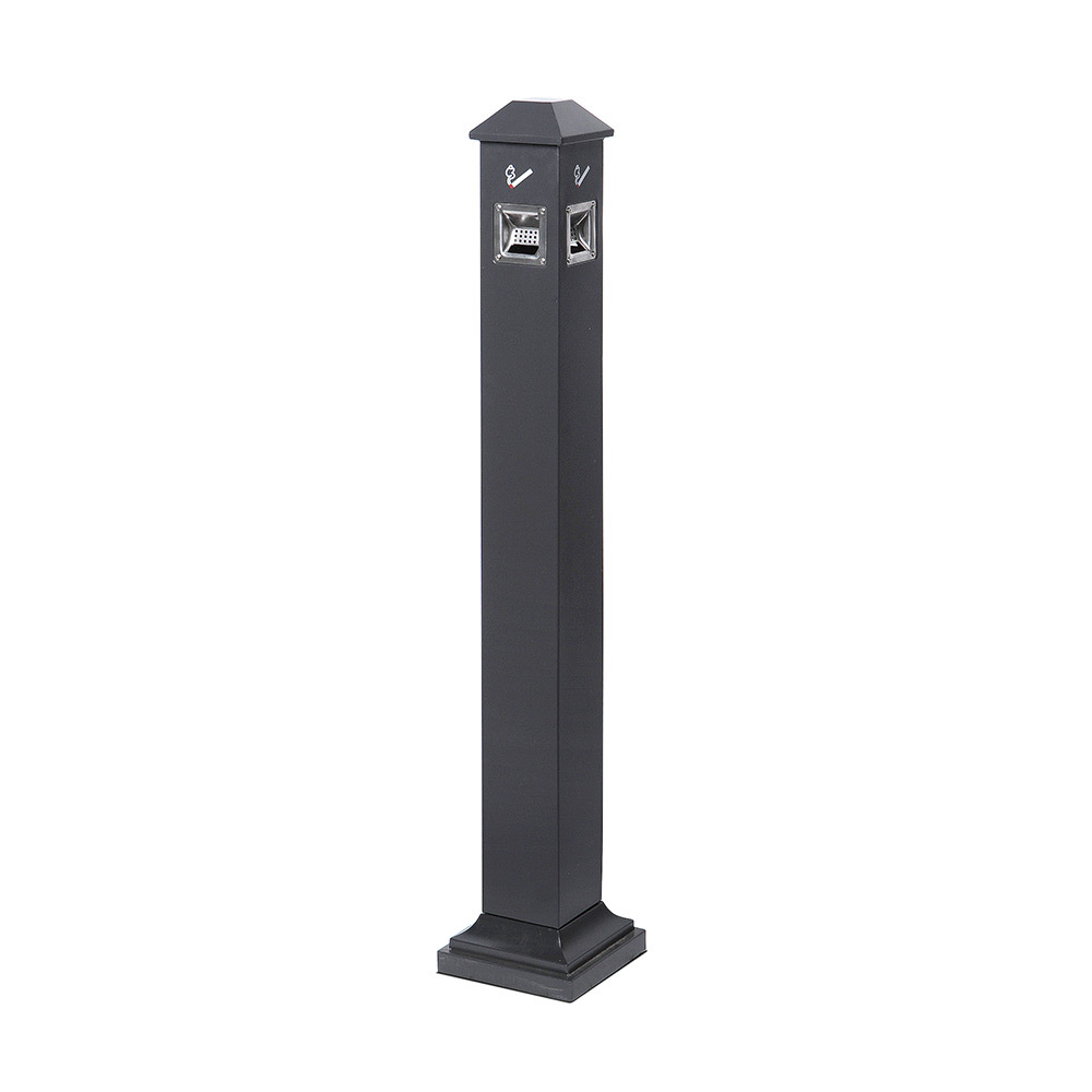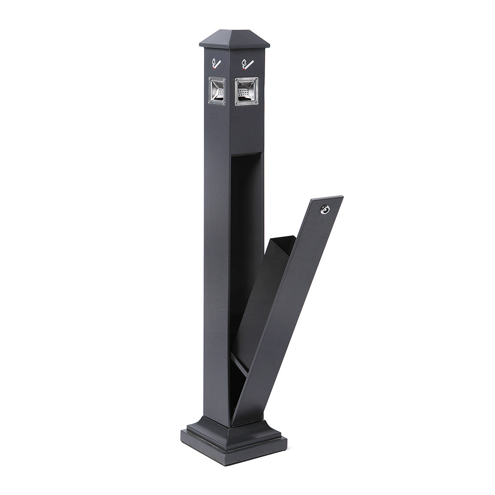 Built for high-traffic areas, the Freestanding Ashtray ensures easy access from all sides. Its lockable compartment simplifies maintenance, while the powder-coated black finish withstands the elements. Secure it firmly with the included ground mounting kit for a professional, long-lasting setup.