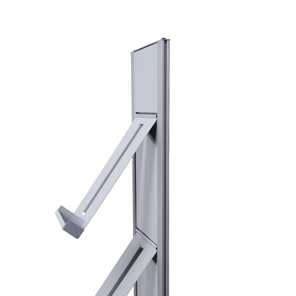 A totem with metal brochure shelves or with transparent brochure pockets, both are possible with the Brochure Rack Totem! A modular and freestanding rack, easy to assemble. Organise the shelves and pockets to your preference. Choose the colour that suits the surrounding elements. Available in designer matt black or traditional minimalistic silver. Display your brochures in the bestseller Brochure Rack Totem!