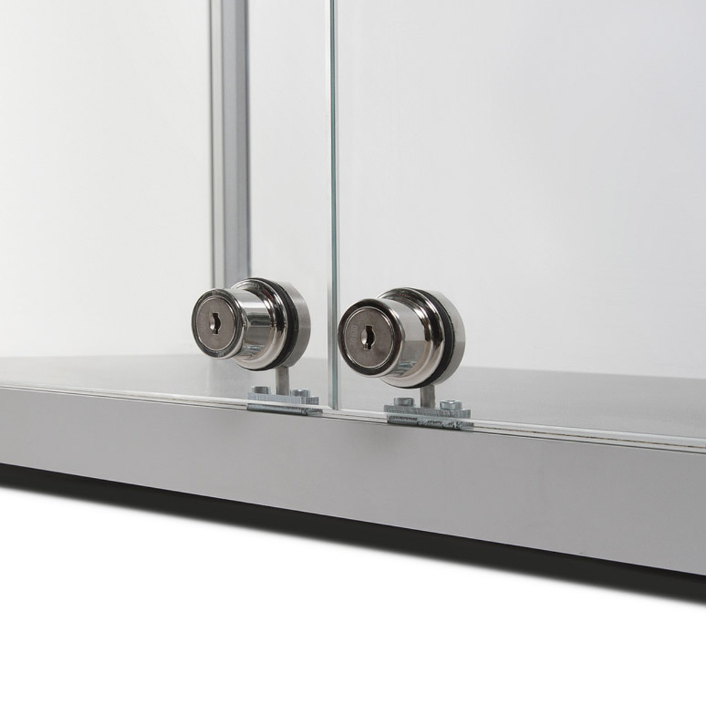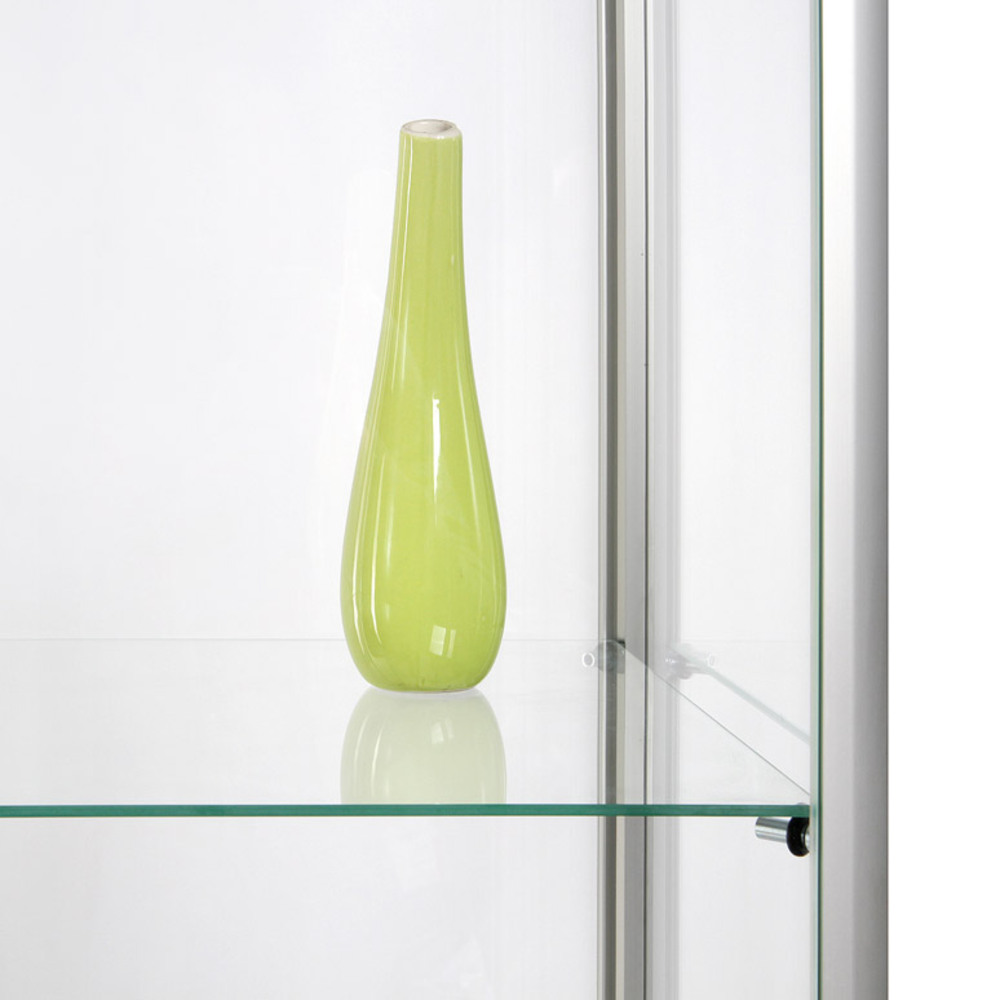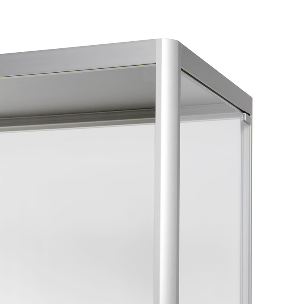 The Glass Showcase 800 mm / 400 mm double door is a perfect vitrine for presenting your objects or collection items for viewing! With radius corner silver anodised aluminium profiles, 4 adjustable glass shelves that can hold up to 10 kg weight and 4 adjustable swivel feet that guarantee stability. Choose for hinged doors to each short side or go for a double door. Your items are always protected, thanks to the cylinder key locks. Show your items with the Glass Showcase 80 0mm / 400 mm double door!