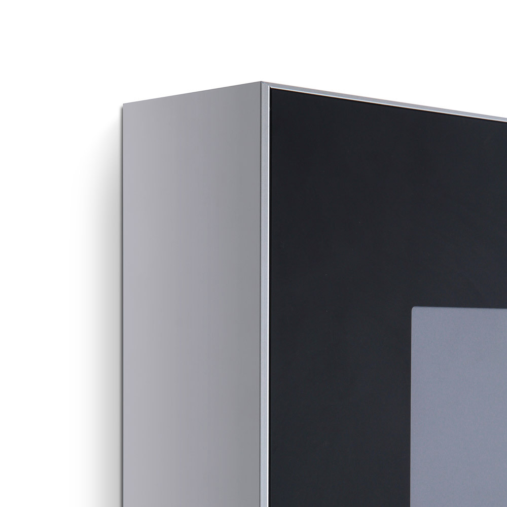 Easy wall mounting with screws (not included). The housing is made with high tempered safety glass to protect the professional Samsung screen. Available in sizes 43”, 50” and 55”. The housing is produced in black but other RAL colours are possible on request. The Digital Wall Panel can be used in portrait or landscape orientation.