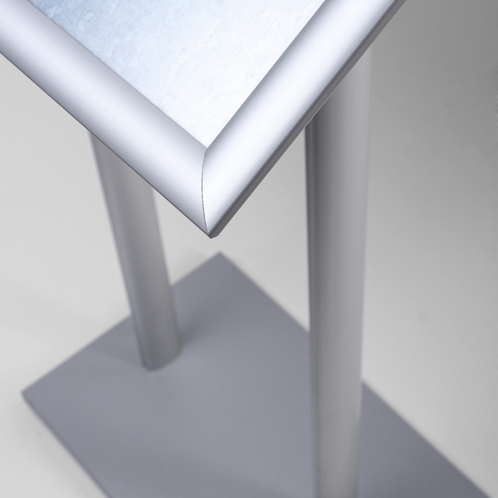 The Menu Board Design standard offers a sleek 25 mm snap frame makes updating effortless while offering flexible mounting options. Supported by a sturdy aluminium pole and MFC base with rubber feet, it stays firmly in place. Perfect for menus, promotions, or stylish information displays!