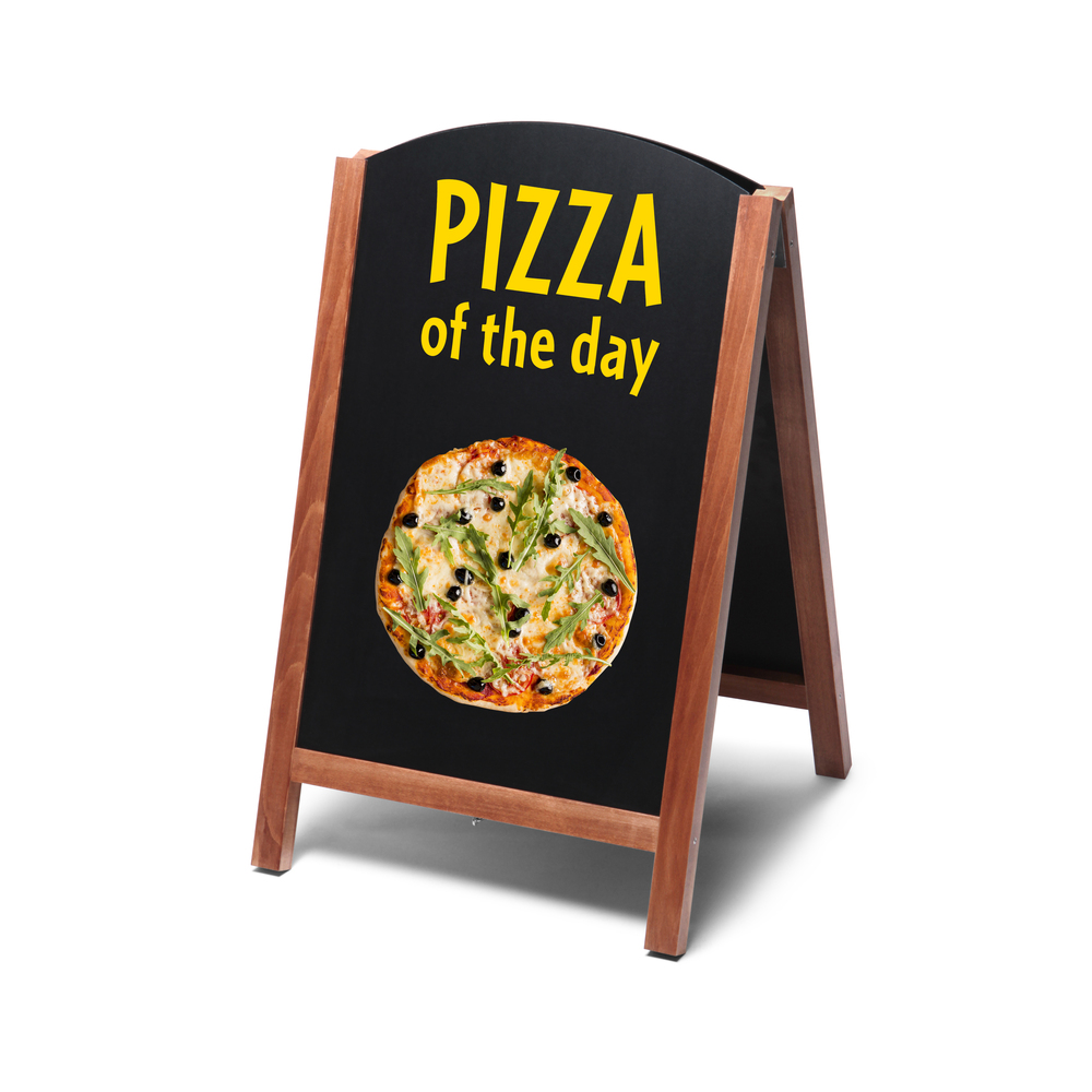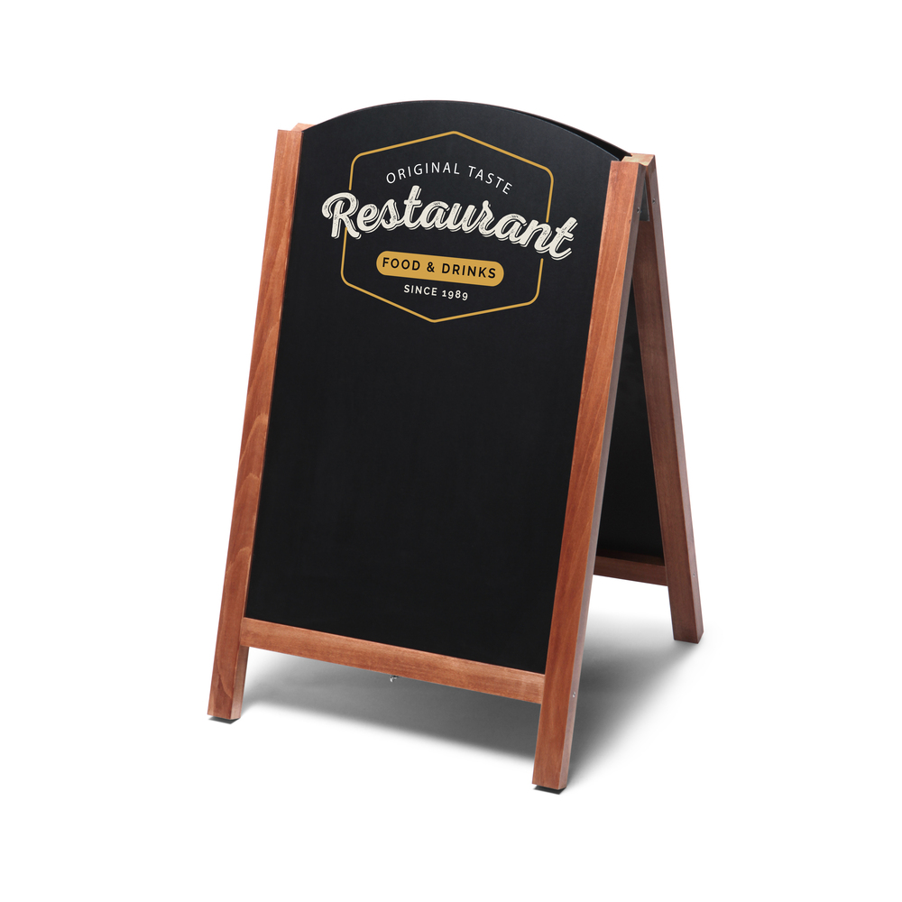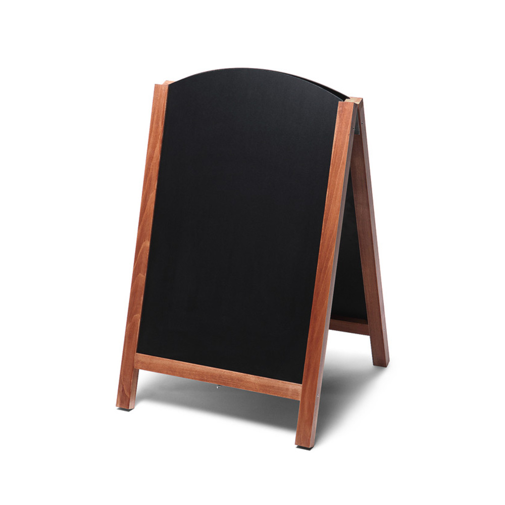 With its charming rounded top, the Natura Chalk Fast-Switch A-Board combines style with functionality. Crafted from premium stained hardwood and elegantly finished with a matt varnish, this A-Board guarantees exceptional durability while creating a warm and inviting ambiance in any setting. The sturdy 4 cm wide legs provide reliable stability, making it a perfect choice for high-traffic areas