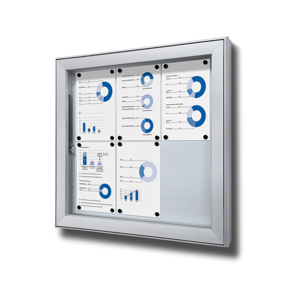 This showcase combines security with style, including a sturdy lock and is delivered with a two keys to keep your content secure. The robust door with 4 mm ESG safety glass provides clear visibility while protecting your content. With a steel back wall and mitred corners, the showcase ensures a sleek and professional look. Gas springs are incorporated to facilitate a smooth and effortless opening and closing of the showcase. A suitable showcase for wall, fence and freestanding post mounted installations. Perfect to use in schools and municipalities.