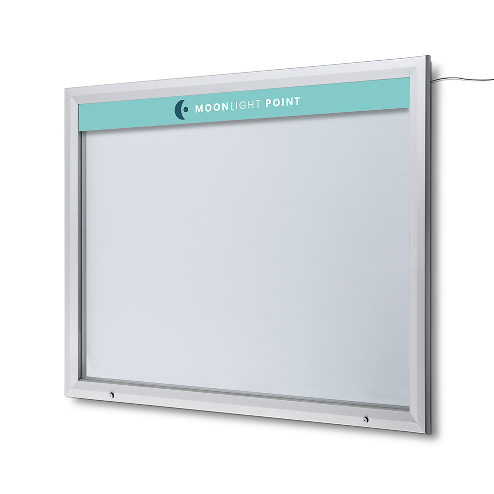 The integrated LED light strip lights up your content, drawing extra attention to your display. Please note, only the content below the logo is illuminated, not the topcard. Additionally, ensure the electrical connection must be done indoors - it cannot be exposed to rain.When ordering the 'frame only' the product includes an empty topcard, which you can print on. When choosing the 'frame + logo' print option, we will print the topcard for you with the print you upload.