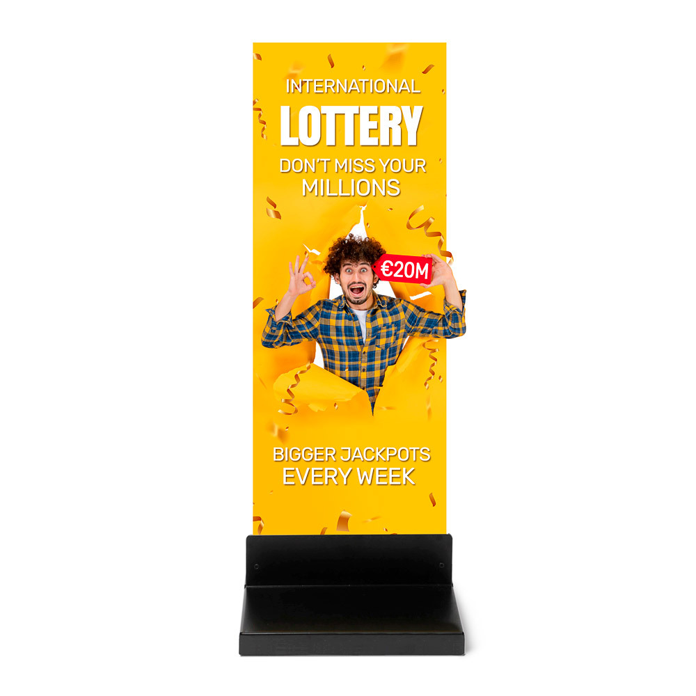 Whether it's to promote, share information or enhance your brand presence: The versatile Panel Base Steel suits every need. Smoothly insert your promotional panel into the sleek black steel base. The Panel Base Steel can be used for panel thicknesses from 2 to 10 mm, with widths from 40 to 80 cm and heights between 40 and 200 cm. The panel requires no holes. Just easily insert your promotional panel, lock in place and you're ready to go!