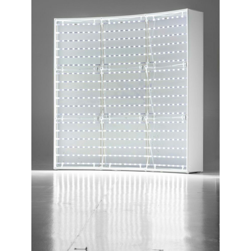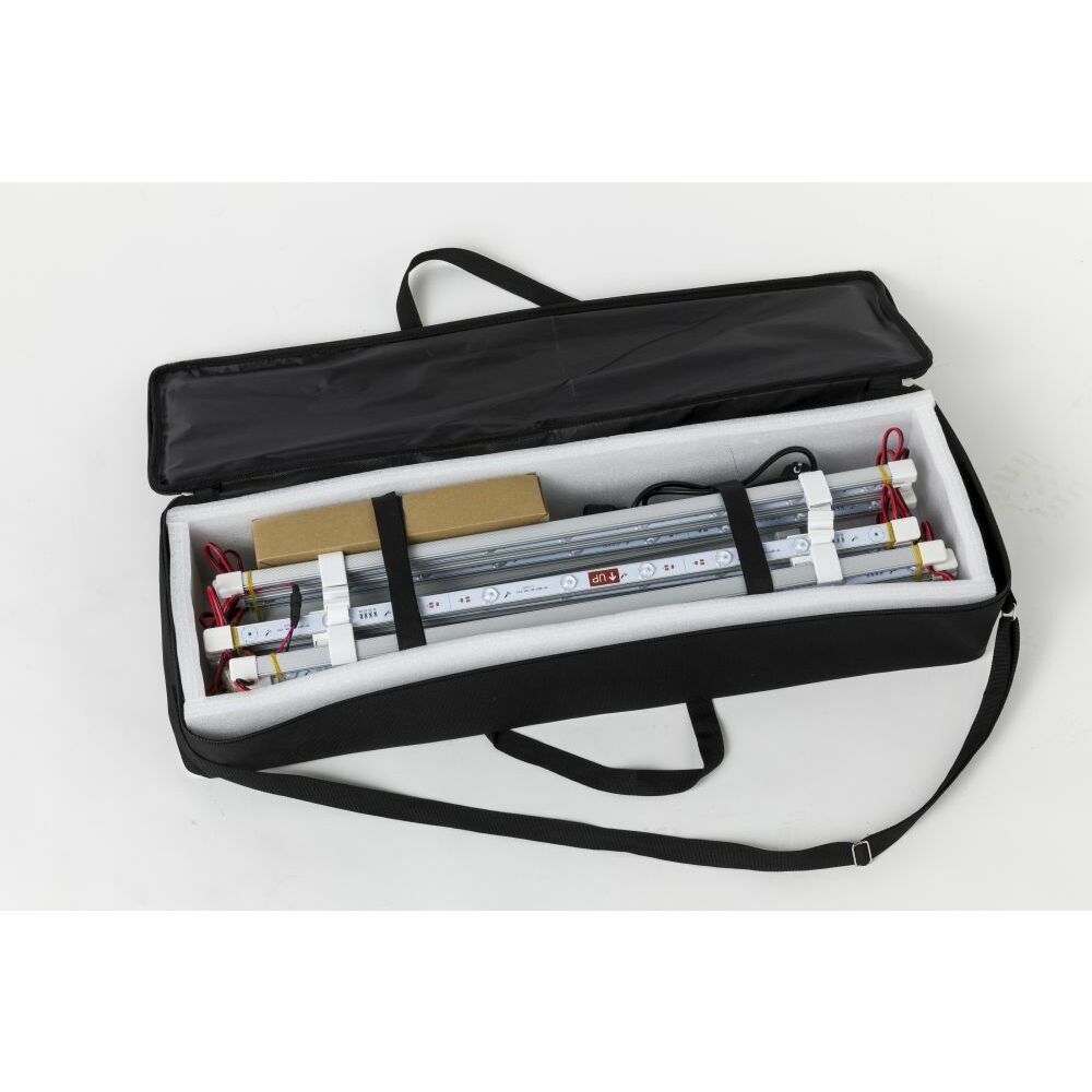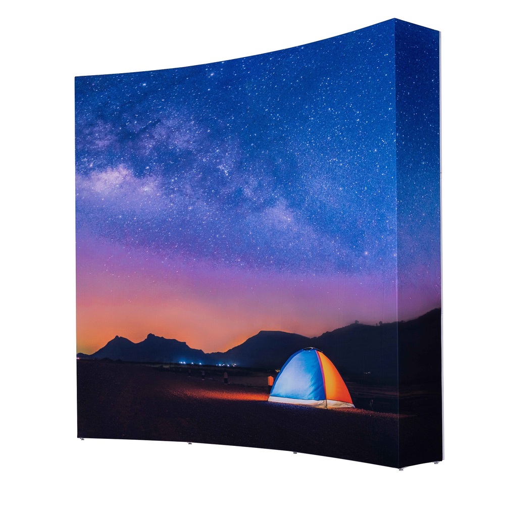 Give your presentation an extra boost with the Pop-Up Impress Curved with LED. Its curved aluminium frame with integrated LED curtains brings your graphics to life instantly. Simply unfold the frame, slide your silicone edge graphic into the grooves, and complete with a block-out. When the event’s done, transport it in the padded trolley — your display shines anywhere, anytime!