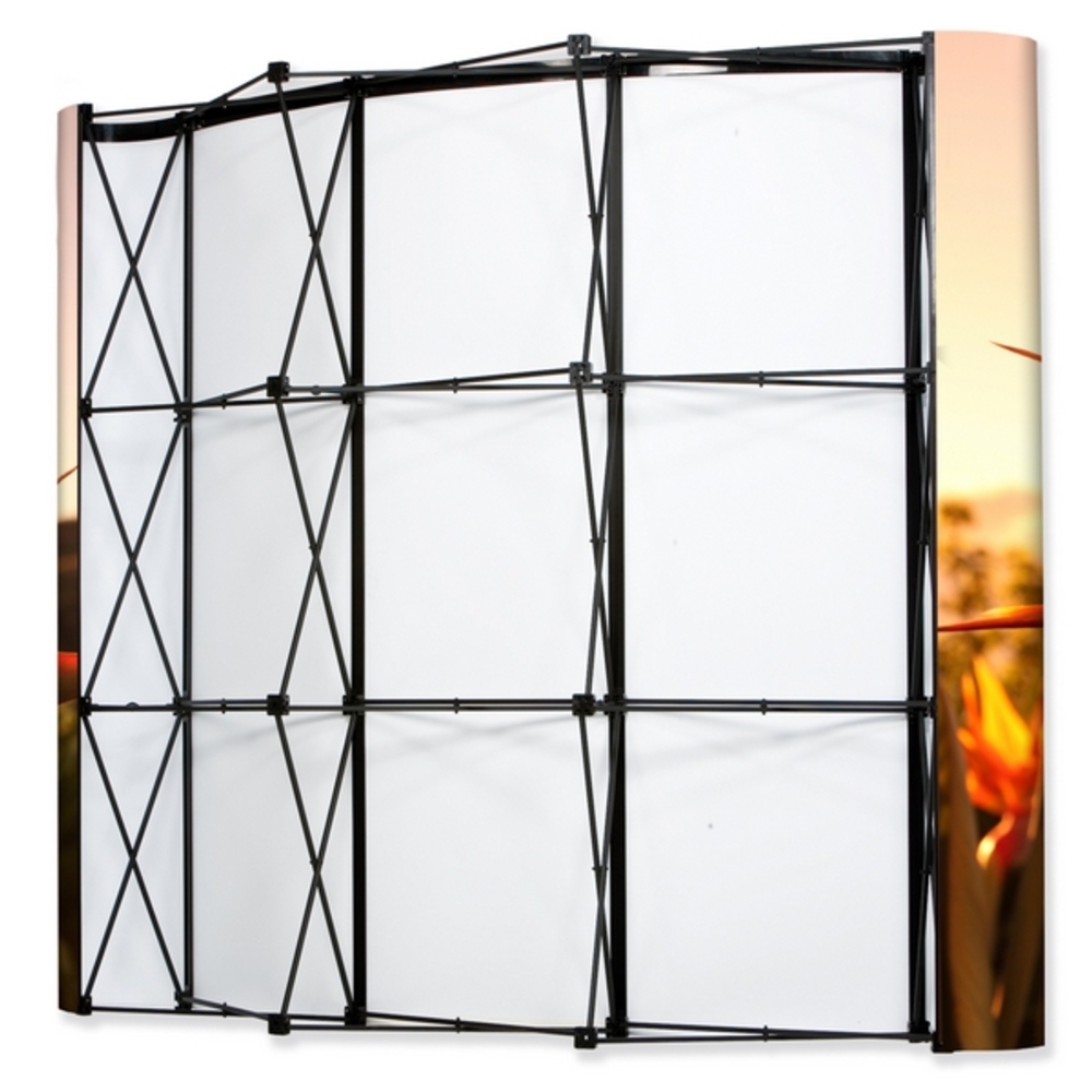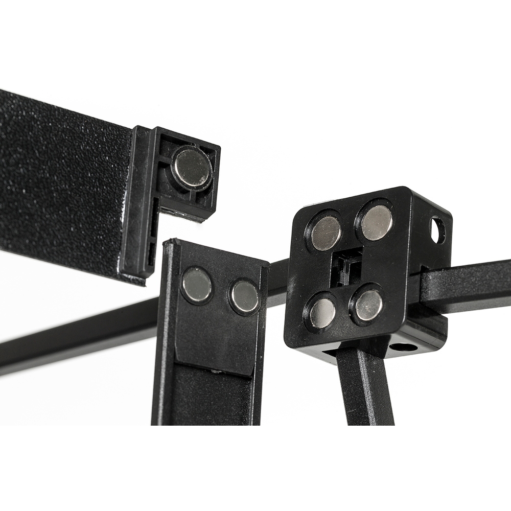 Impress everyone with the magnetic power of the Pop-Up Magnetic Curved! Its handy click system with reinforced 12-mm magnets makes installation effortless. Simply secure your front graphic to the frame using the included magnetic bars and attachment kit. Need a backside? Extra attachment kit is available here. Take it anywhere with a soft bag or a hardcase that transforms into a counter.