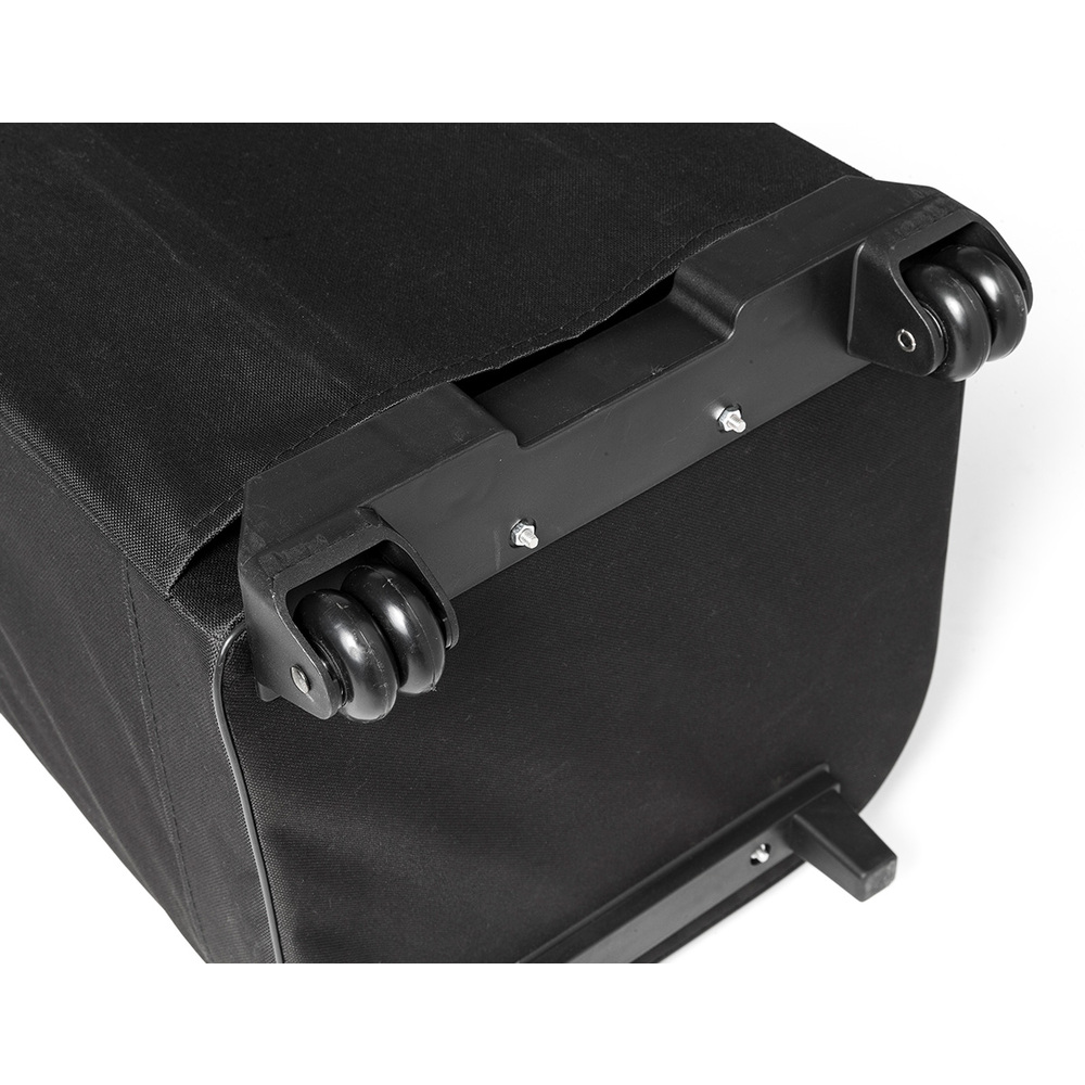 - Sturdy trolley with wide wheelbase and bearing wheels